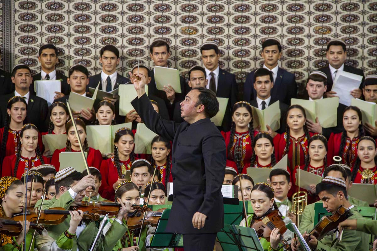Завершился концерт патриотической песней-маршем «Туркменистан». Атагельды Гарьягдыев. Публика несмолкающими аплодисментами выражала благодарность Реджепу Реджепову за создание прозвучавших произведений и исполнителям – за бережное отношение к наследию композитора.