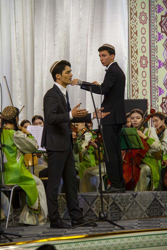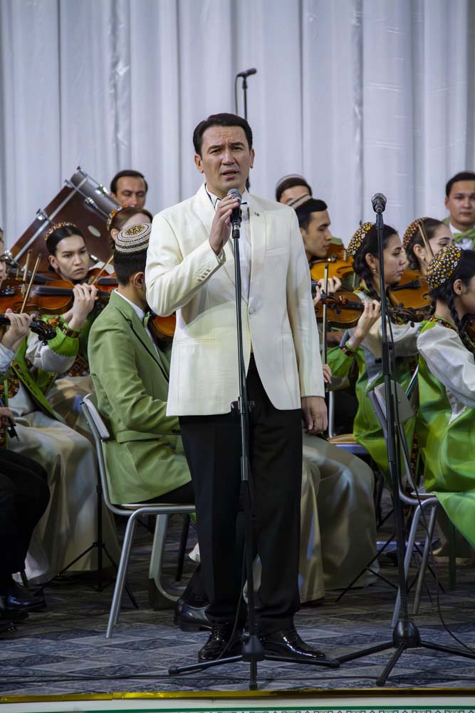 В концертной программе прозвучали лирические, романтические, драматические и патриотические песни. Ковус Бяшимов передал дирижерскую палочку заслуженному артисту Туркменистана Расулу Клычеву, и концерт продолжился исполнением песен любимого композитора. Особенно запомнились слушателям фрагменты из оперы «Героглы» в исполнении народного артиста Туркменистана Ашира Ходжатова.