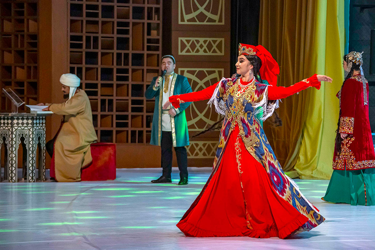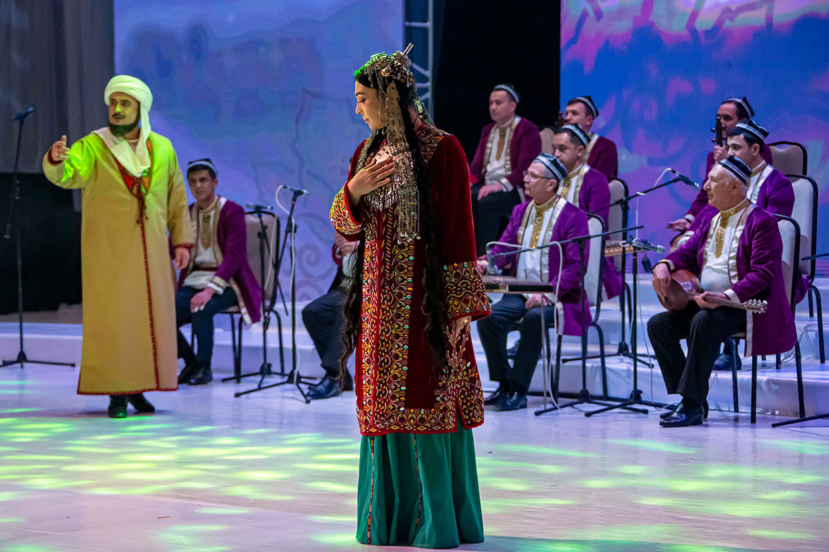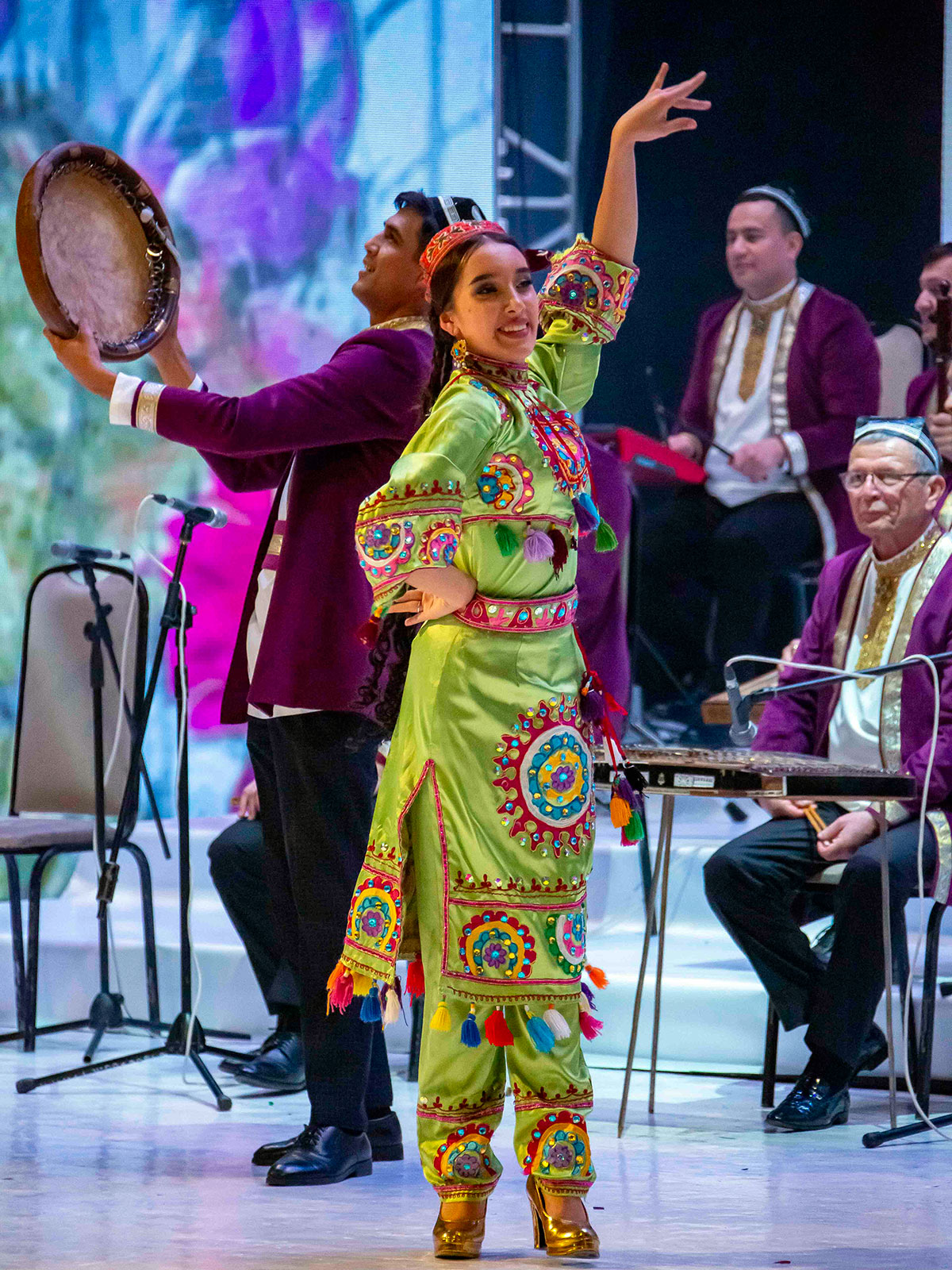 Концертную программу продолжил ансамбль музыкантов, которые продемонстрировали навыки игры на древних музыкальных инструментах узбекского народа.