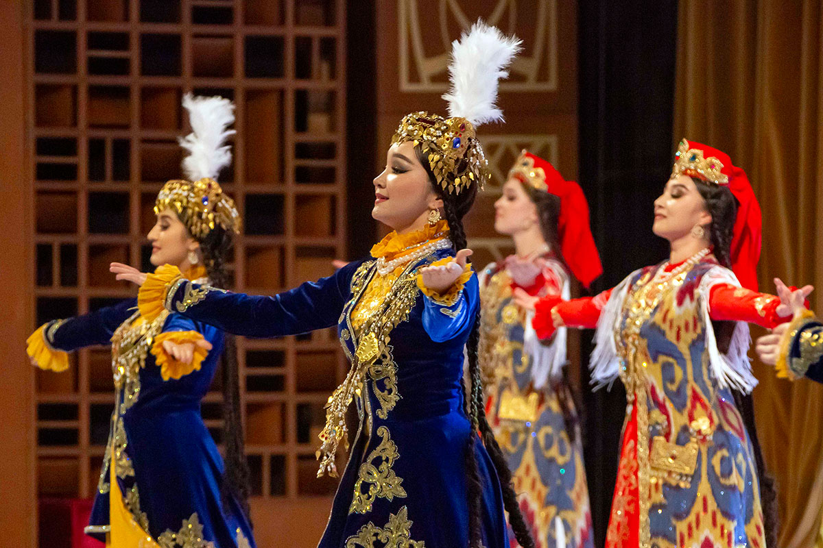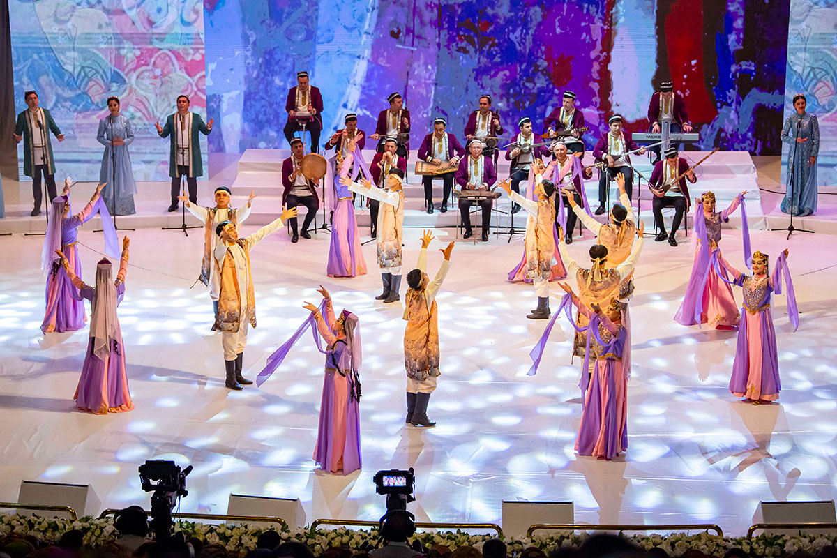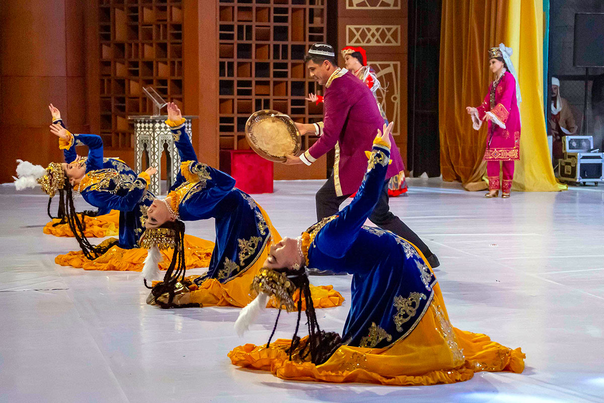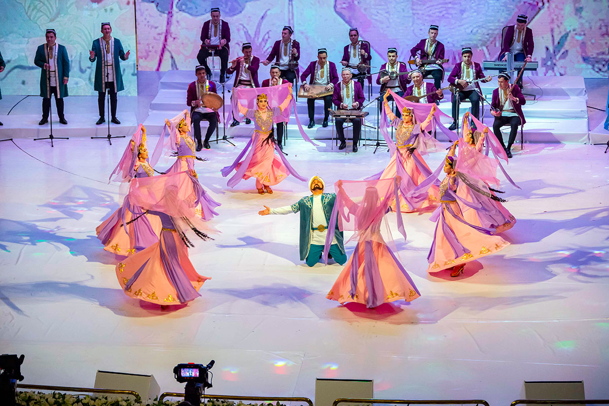Концертную программу продолжил ансамбль музыкантов, которые продемонстрировали навыки игры на древних музыкальных инструментах узбекского народа.