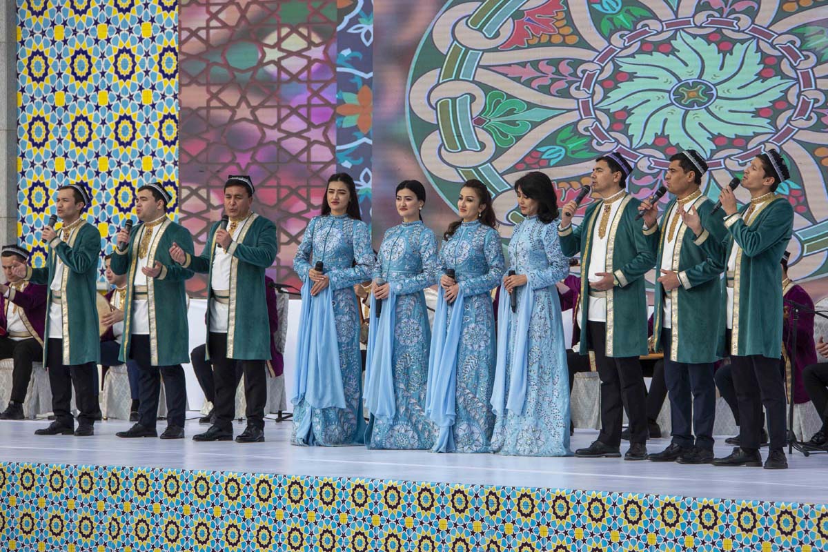Беседу прерывают громогласные звуки барабанов, возвещающие о начале концерта под открытым небом. Артисты ансамбля «Маком» имени Юнуса Раджаби представили для жителей Ашхабада и гостей столицы насыщенную программу, в которой прозвучали народные песни и мелодии, исполняемые на традиционных инструментах.