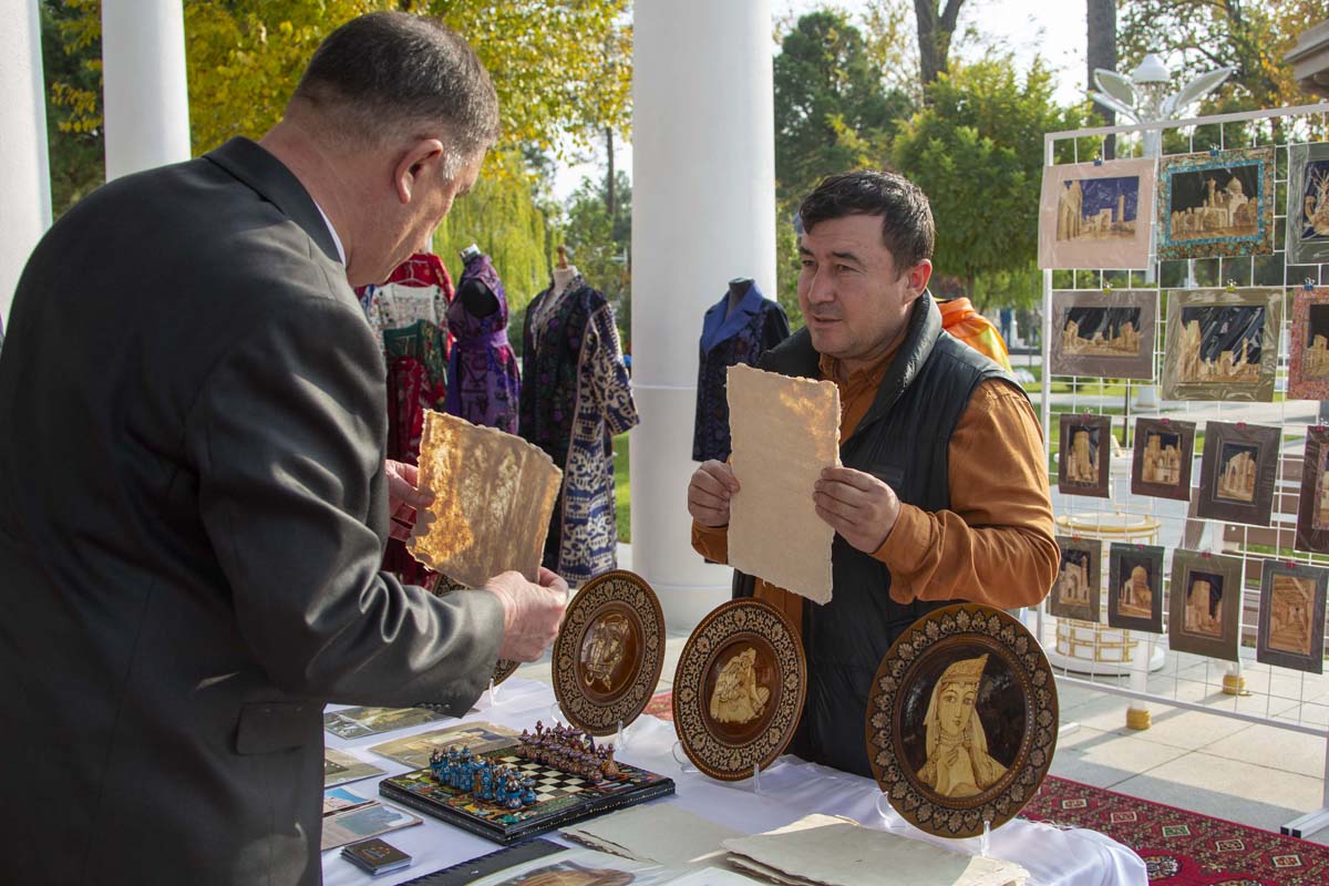 Дополнительный шарм мероприятию придали узбекские ремесленники. Как рассказала мастерица Шоназар Джумаева, золотое шитьё ручной работы славится в Самарканде и Бухаре, откуда она родом.