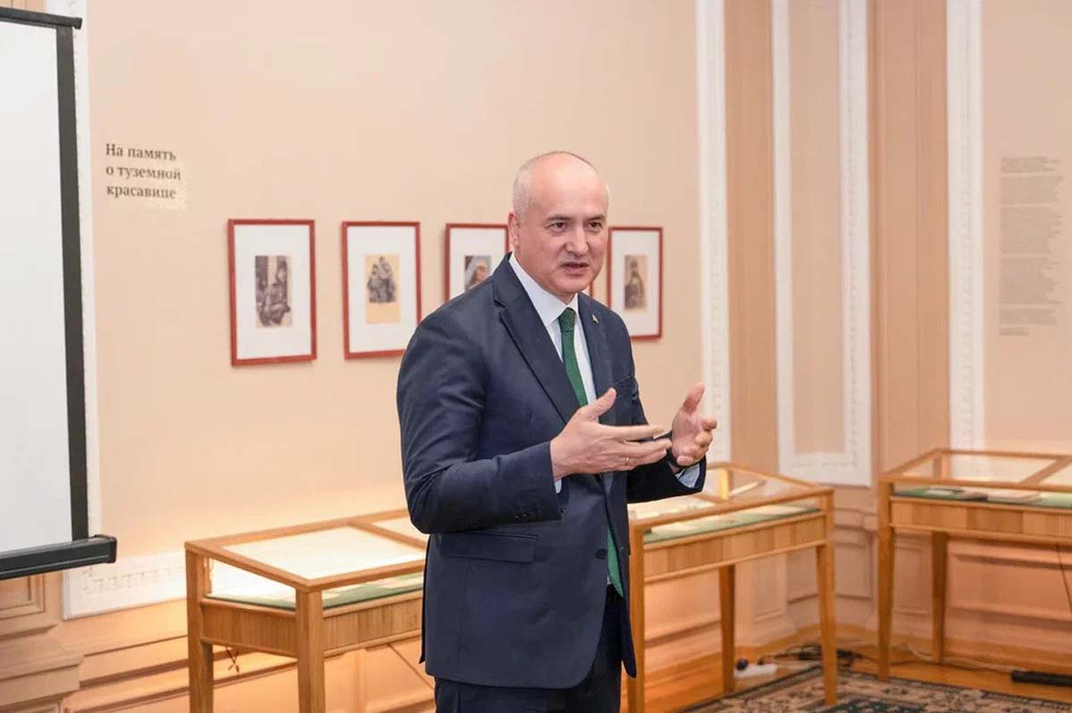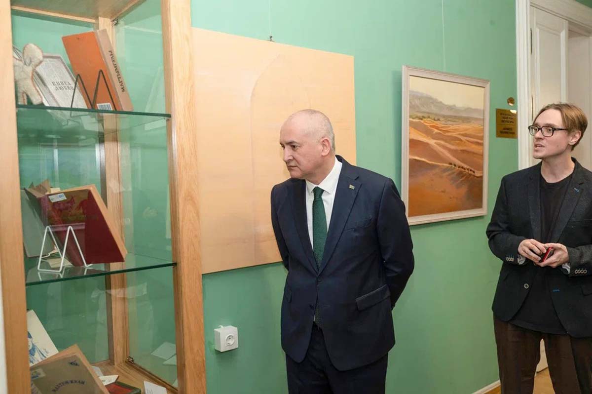 21 ноября посол Туркменистана в России Эсен Айдогдыев вместе с коллегами из посольства посетил Центр восточной литературы Российской государственной библиотеки, где с 16 ноября проходит художественная и книжная выставка «Отражение».