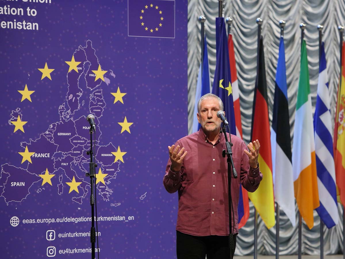 В рамках Недели культуры Евросоюза в Туркменистане в Национальном музыкально-драматическом театре имени Махтумкули состоялся концерт джазового трио из Италии и студенческого ансамбля Туркменской национальной консерватории имени М. Кулиевой.