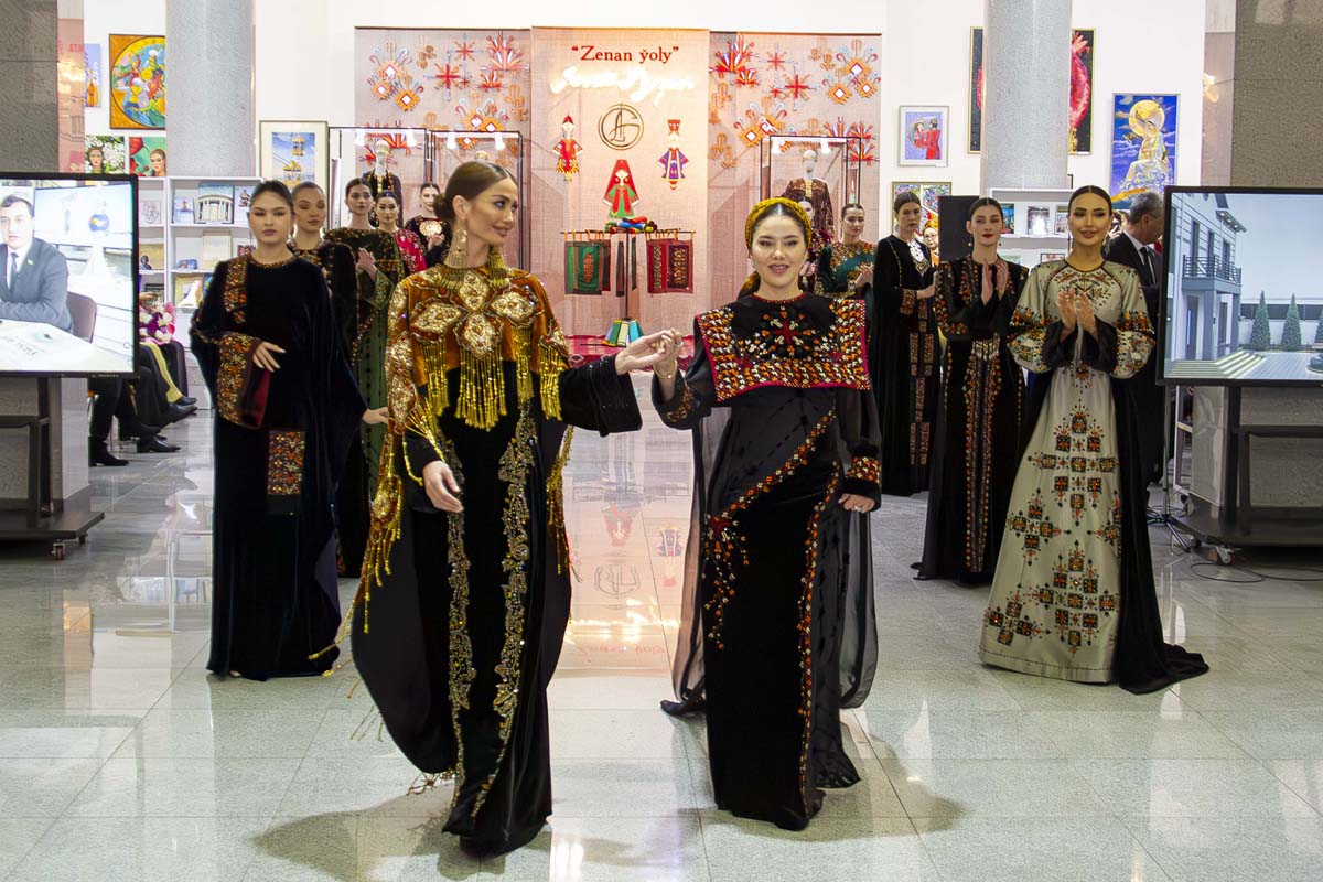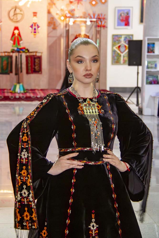 И все же главное внимание публики, особенно её прекрасной половины, привлекла демонстрация коллекции женской одежды Дженнет Агаевой. Дженнет оформила свои модели национальной вышивкой, причем в разнообразных местах костюма. Модели получились великолепными, и коллекция имела большой успех у зрителей.
