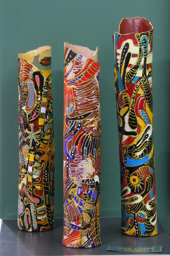 Выставку украсили 14 керамических работ народного художника Туркменистана Марал Атаевой. Первой зрителей встречает инсталляция из трех изящных сосудов под названием «Сельджуки». Изготовленная ручным способом бумага, из которой созданы сосуды, имитирует папирус. Это свидетельствует о желании автора подчеркнуть древность поднятой ею темы, а абстрактная роспись красными пятнами с позолотой говорит о роскоши, присущей тем историческим временам.