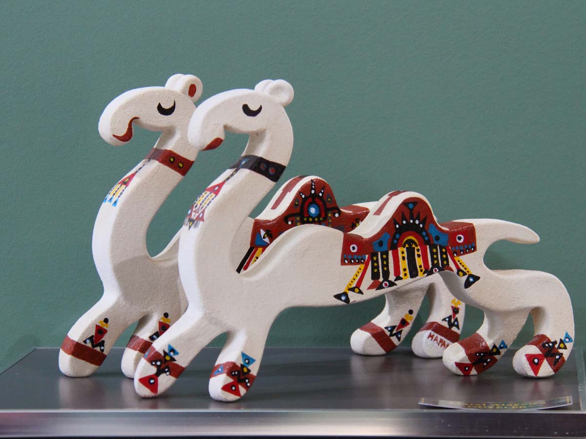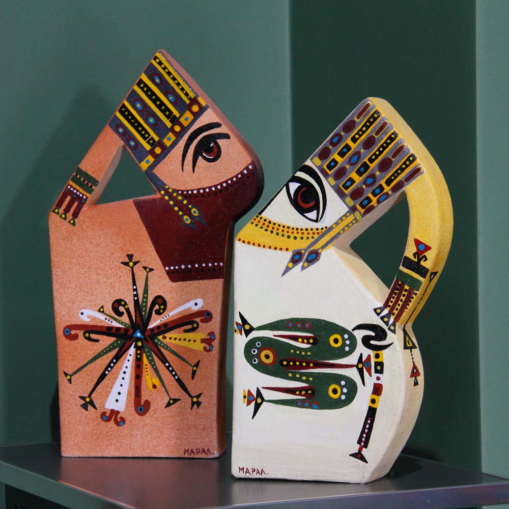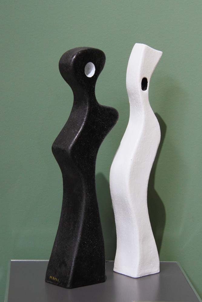 – Мне дал толчок к абстракции туркменский ковровый орнамент, – объясняет свое увлечение модерном Марал Бахшиевна. – Некоторые из его элементов вдохновили меня на создание фигурок в стиле модерн. К примеру, инсталляция из двух фигур «Материнство». Вы узнаете в ней ковровый элемент? Почему я использую черный и белый мрамор? На мой взгляд, такой контраст усиливает притягательность моих фигур.