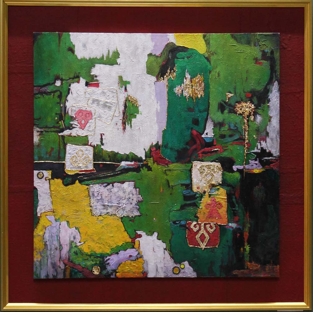 Сегодня со своими работами в Галерее искусств выступили восемь молодых живописцев и один керамист. Уникальность выставки в том, что в работах присутствует модернизм практически во всех его проявлениях. К примеру, картина «Движение» Сапа Пюрлиева – яркий образец кубизма. Она красочно передает композицию простых геометрических тел. Квадраты по цвету гармонируют друг с другом, создавая приятную общую гамму. Если взять золотые квадраты за солнечные дни, а черные - за ночь, то получится движение времени. Но, возможно, автор не стремился осмыслить свое произведение, представляя в ней созерцательную ценность в виде геометрической абстракции. Ан, нет! Как заявил Сапа, золотые квадраты – это он, а черные – Малевич. После такой информации хочется переделать название картины на «От меня до Малевича». Амбициозно, как и весь модернизм!