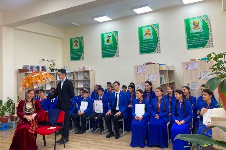 В столичной учебно-воспитательной школе № 21, которая специализируется на интенсивном обучении иностранным языкам и включает в себя дошкольное отделение, состоялось мероприятие, посвященное поэзии Махтумкули в музыкально-песенном искусстве Туркменистана.