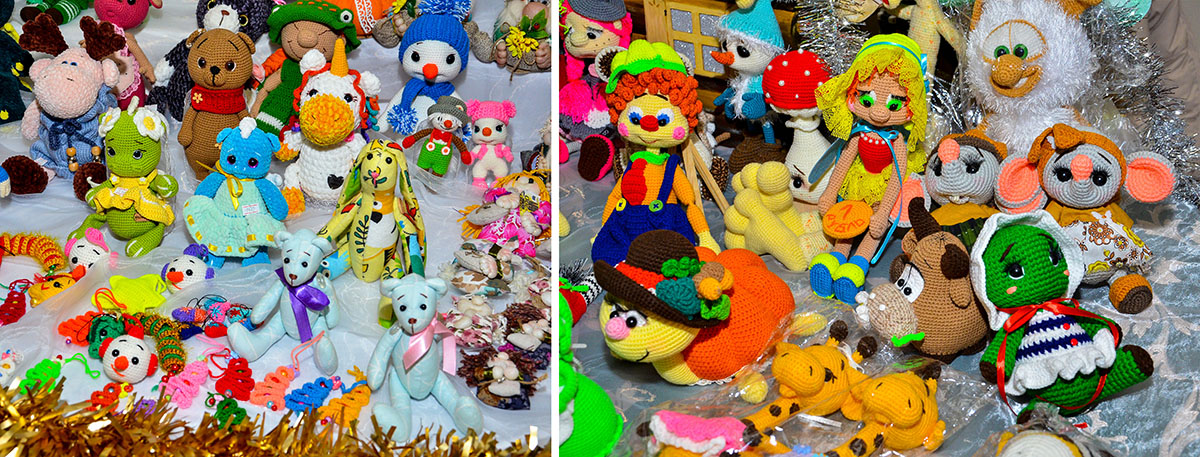 Лучшие мастера от движения народных умельцев приняли участие в выставке-продаже эксклюзива изделий ручной работы. Тема Арт-базара – «Мир кукол и игрушек». В окружении больших и маленьких ёлочек в блестках сверкающей мишуры расположились нарядные столы с очаровательными куклами и игрушками, а рядом их авторы, некоторые даже в костюмированных нарядах, - так выглядела эта волшебная торгово-выставочная точка, организованная в честь праздника.