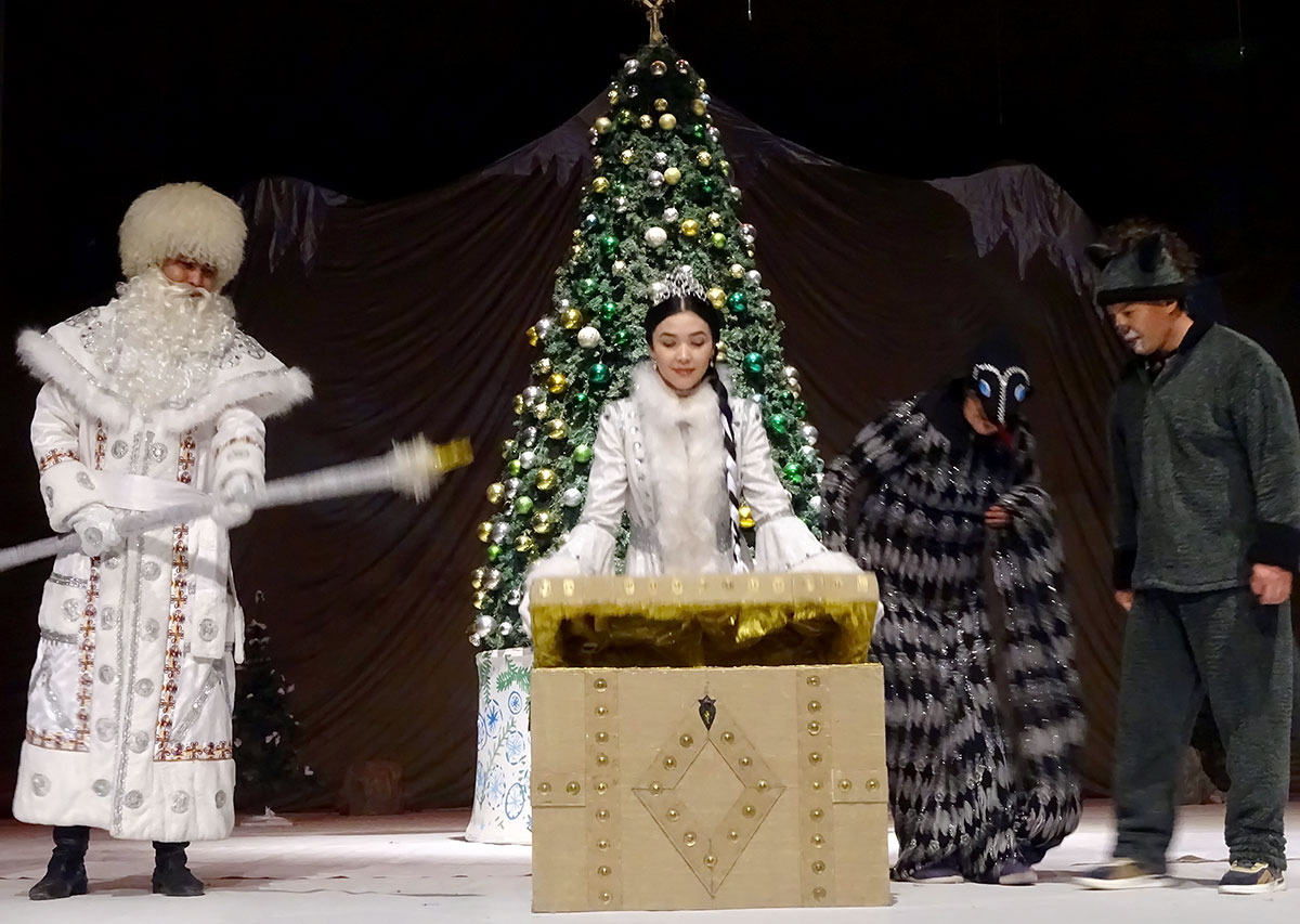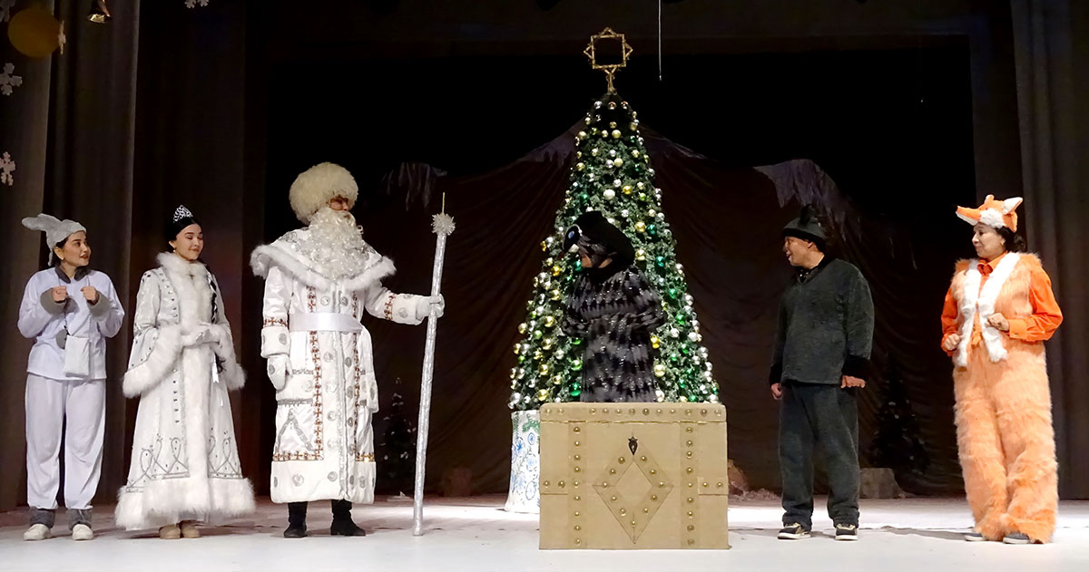 Сегодня артисты театра представляют спектакль «Kim hazynaň eýesi?» («Кто хозяин клада?!»). Постановка новогодней сказки была доверена молодому, но талантливому режиссеру Сурай Рахмановой. Несмотря на то, что это её первая режиссерская работа, можно с уверенностью сказать, что она справилась с задачей. События пьесы происходят в лесах Койтендага, накануне Нового года. Главные герои сказки - лесные звери.
