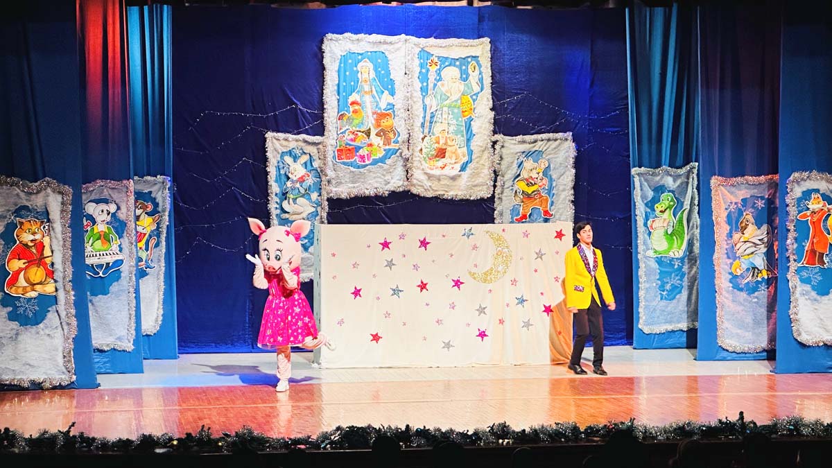 В дни зимних каникул в Туркменском государственном театре кукол проходят новогодние представления для детей и их родителей. Мир сказочных героев оживает прямо с фойе театра.