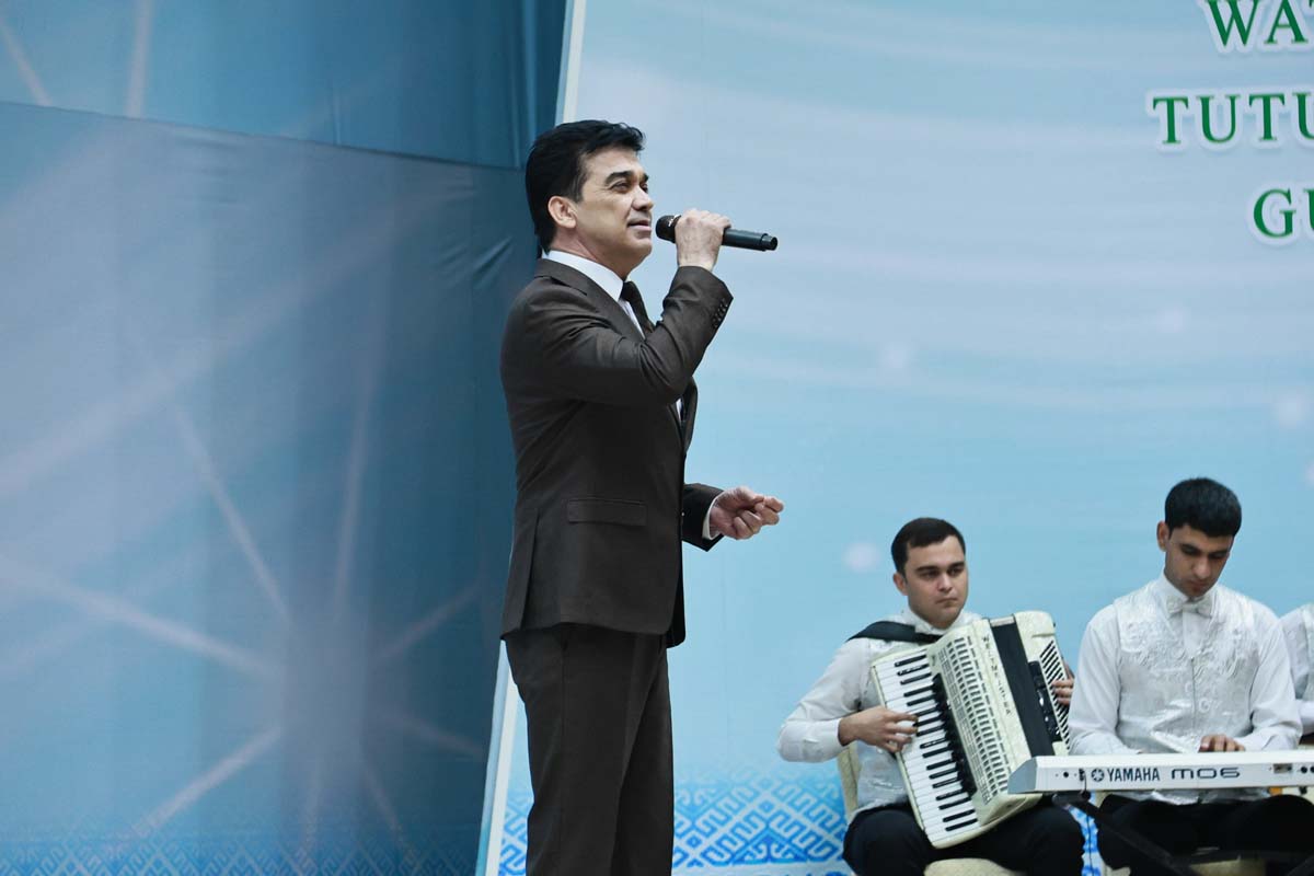 Литературно-музыкальная композиция, открывшая церемонию, произвела глубокое впечатление на её участников. С большим воодушевлением исполнялись песни, посвящённые военным годам, а выступления, сочетающие духовность и патриотизм, обогатили смысл и содержание торжества. В этой связи примечательно, что песни, написанные на стихи Героя-Аркадага и Мяликгулы Бердымухамедова, стали гимном единству, мужеству и трудолюбию туркменского народа.