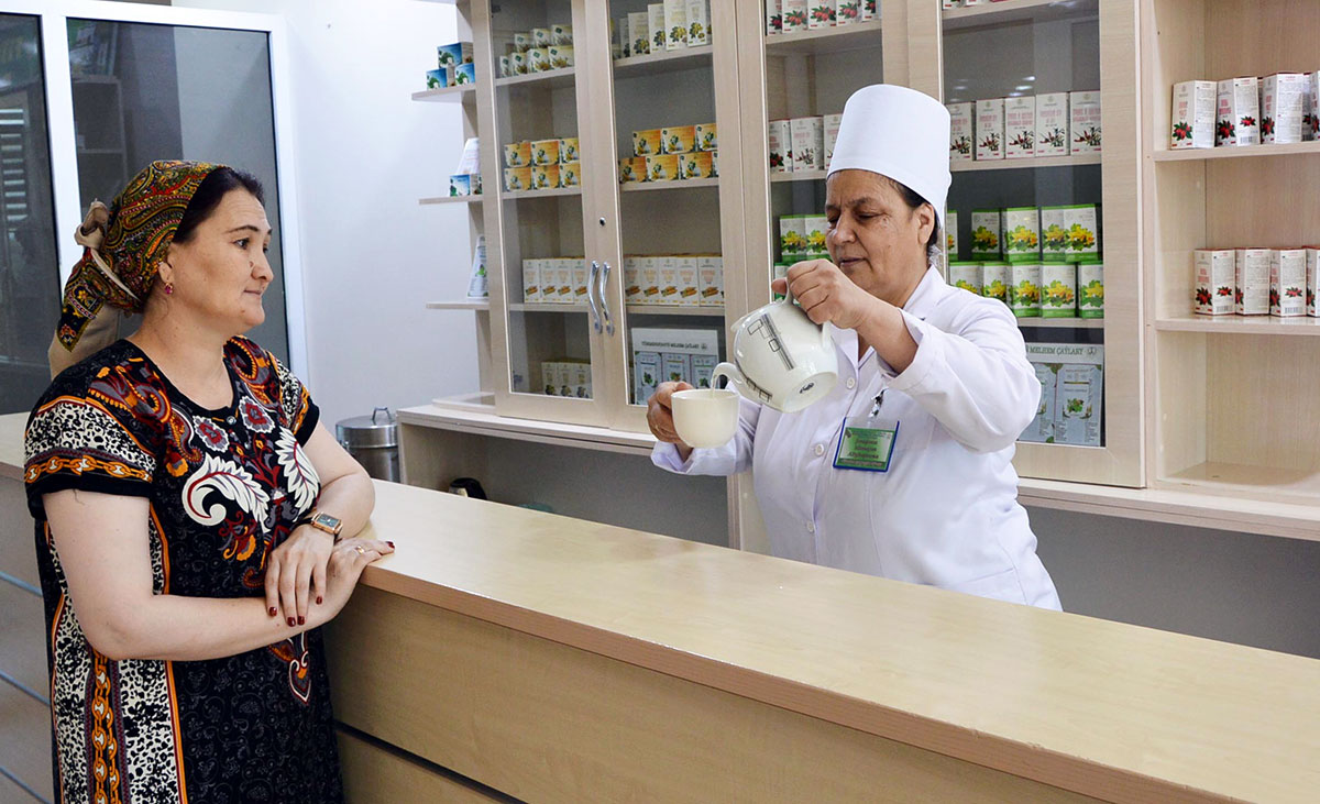 Фитобар, предлагающий целебные чаи из трав, свойства которых описаны в научно-энциклопедическом труде Героя-Аркадага «Лекарственные растения Туркменистана», является одним из самых посещаемых мест.