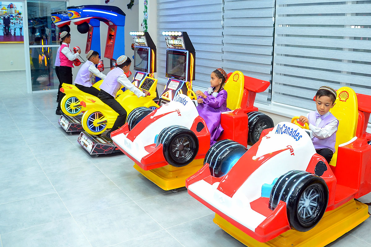 Toplum çagalar dynç alşynyň guralmagy babatda häzirki zaman talaplaryna we gurluşyk ülňülerine laýyklykda gurlupdyr. Dynç alyş merkezinde maşgala bolup dynç almak üçin hem amatly şertler döredilipdir. Bu ýerde ulular, eýýäm kiçi ýaşdan başlap işjeň dynç almak, sport bilen meşgullanmak endiklerini kemala getirýän çagalar öz boş wagtyny gyzykly we şadyýan geçirip bilerler. Merkeziň çäginde dürli attraksionlar, oýun enjamlarynyň zaly, garbanyşhana, çaga oýnawaçlarynyň dükany we beýlekiler ýerleşdirilipdir. Bu ýere gelýänler üçin baglaryň saýasynda amatly oturgyçlar hem goýlupdyr.