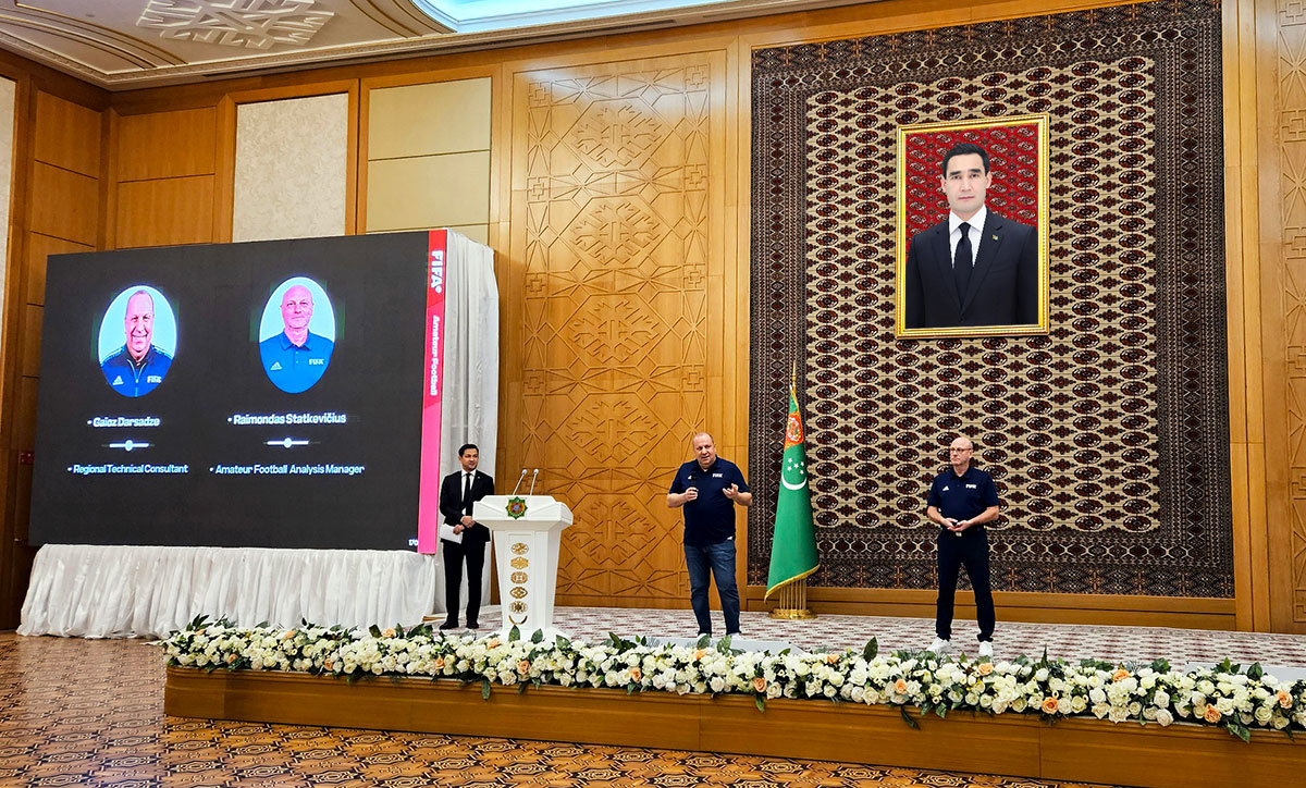 В Ашхабаде с рабочим визитом находятся международные эксперты FIFA — Гайоз Дарсадзе (Грузия) и Раймондас Статкевичюс (Литва). Цель визита — проведение обучающих семинаров для специалистов Федерации футбола Туркменистана (ФФТ) и разработка текущей стратегии развития этого массового вида спорта в стране.