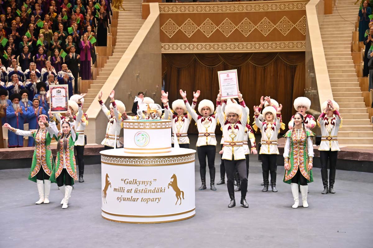 Торжество продолжилось выступлениями мастеров искусства, которые придали мероприятию, проводимому по случаю достижений Группы национальных конных игр «Galkynyş», праздничный колорит.