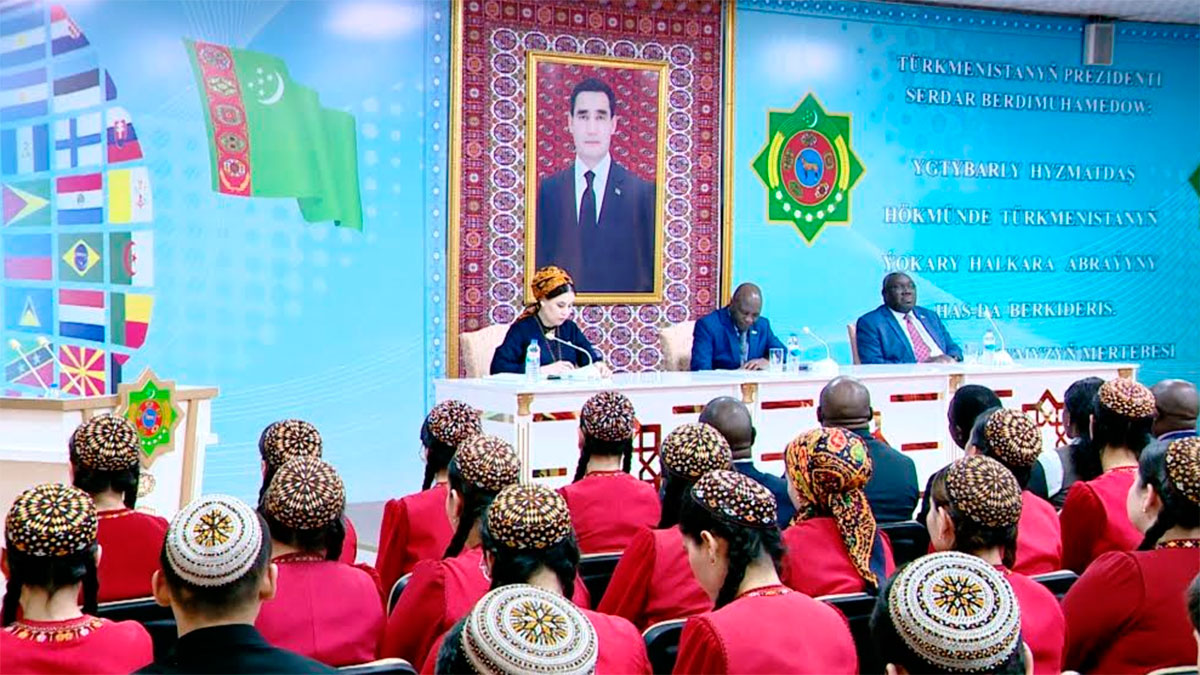 В рамках визита в Туркменистан зарубежные гости встретились с представителями Института международных отношений Министерства иностранных дел Туркменистана.
