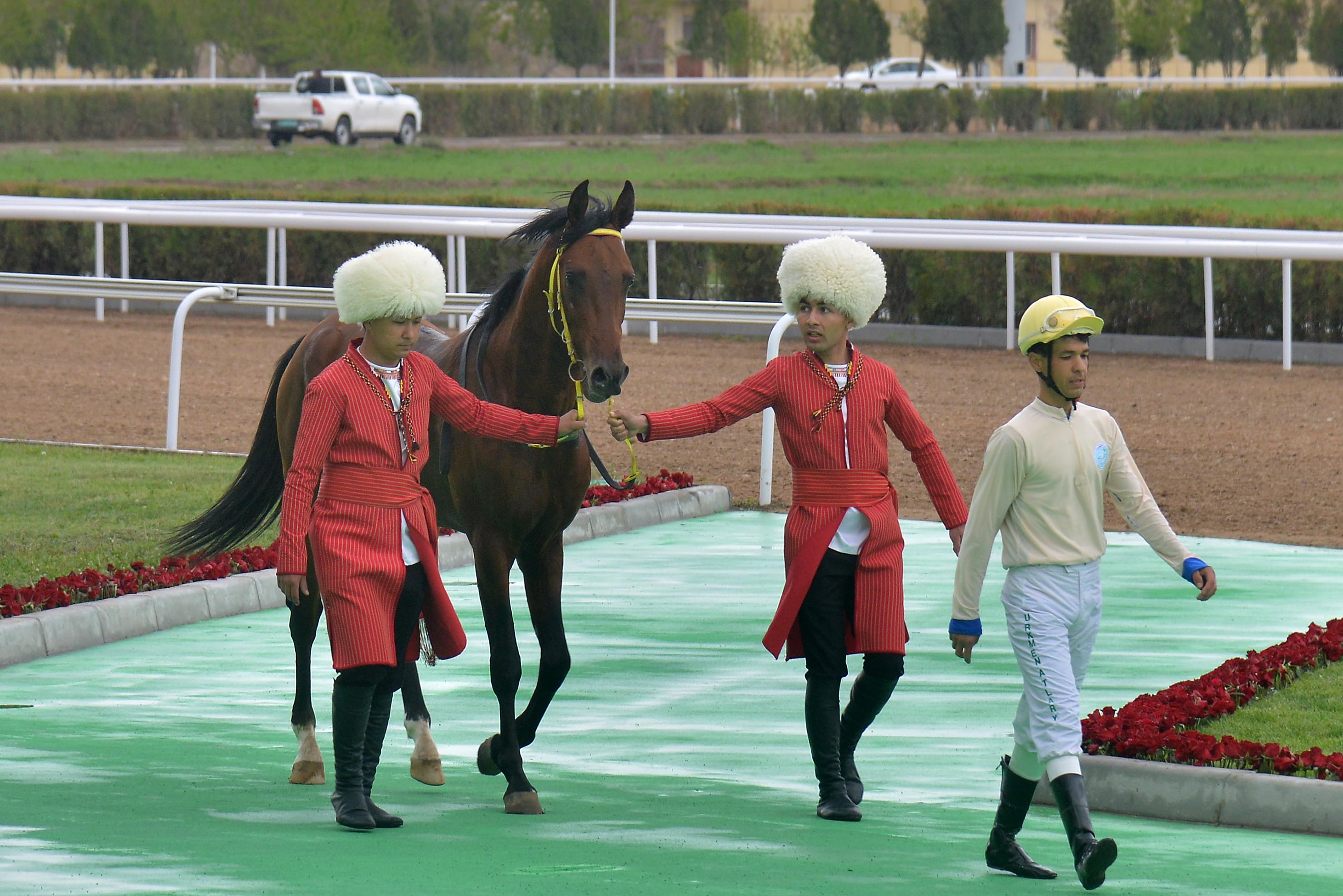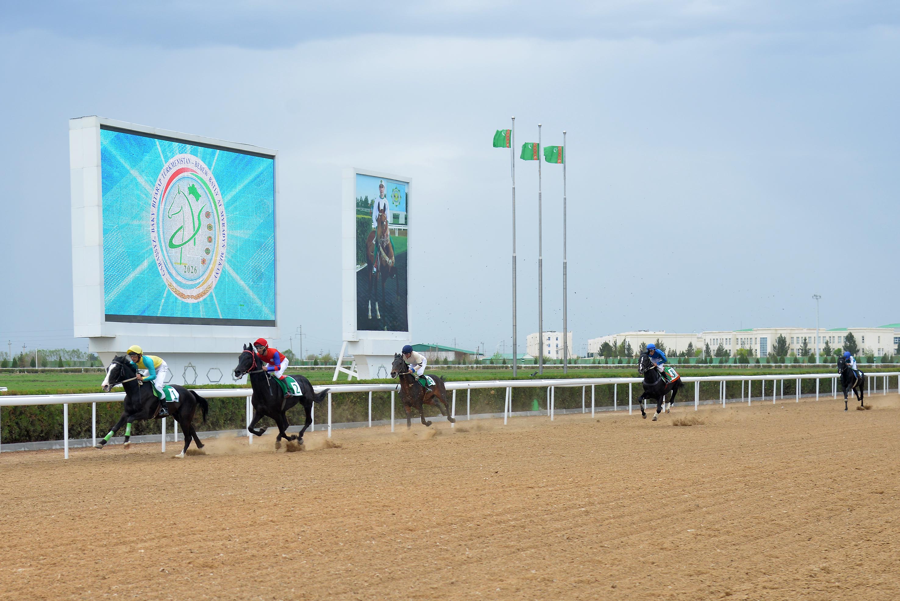 По завершении культурной программы внимание зрителей переключилось на беговые дорожки, где в первом заезде на дистанции 1200 метров среди лошадей в возрасте четырёх лет и старше первенствовал гнедой конь Галмаз под управлением жокея Мухиддина Кулыева, показавший результат 25,7 секунды.