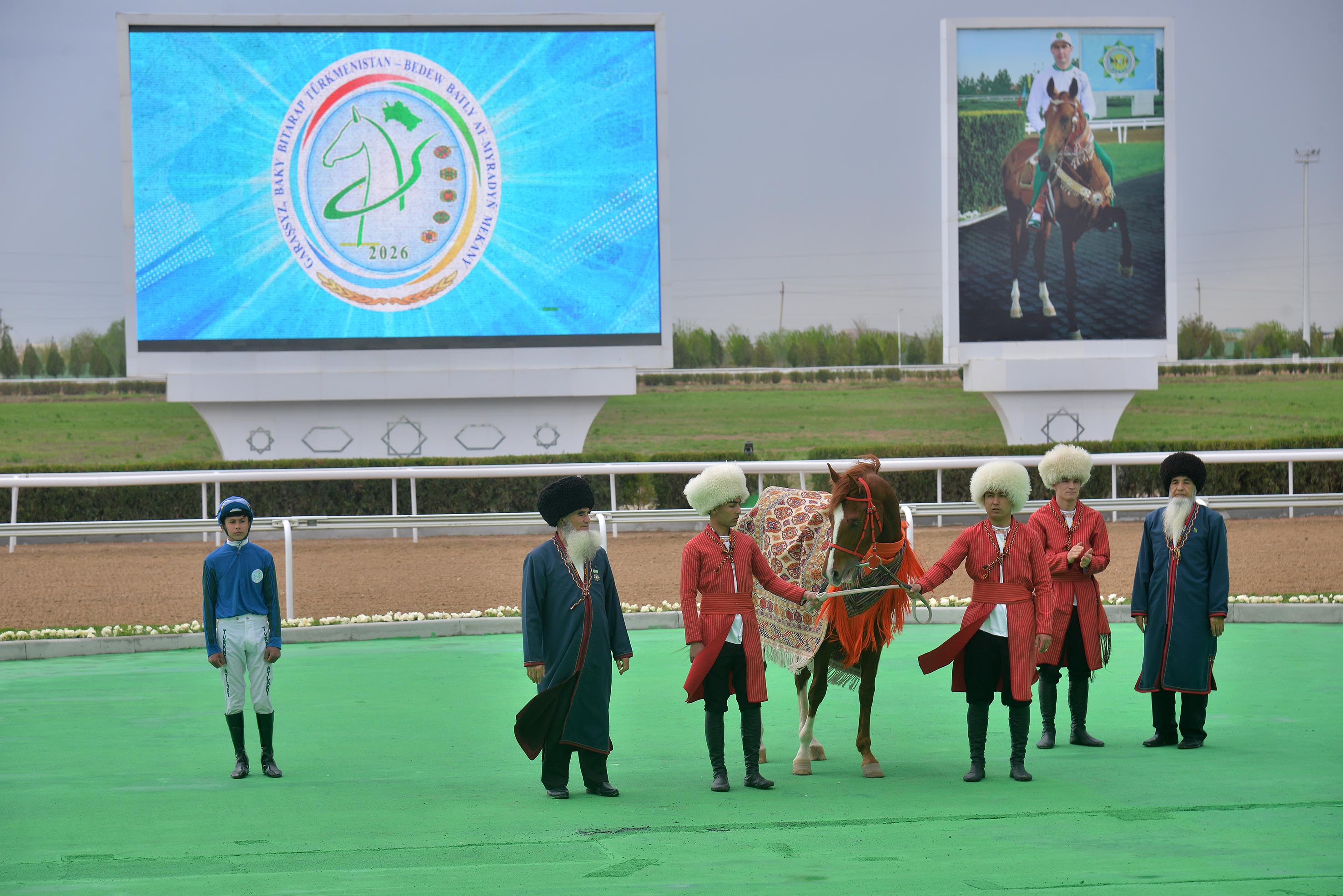 В первое воскресенье апреля современный конноспортивный комплекс Лебапского велаята стал центром масштабных мероприятий, ознаменовавших открытие весеннего скакового сезона. Праздничная программа началась с ярких выступлений мастеров искусств региона, которые в своих музыкальных и фольклорных композициях прославляли грациозную стать и непревзойдённую красоту ахалтекинских скакунов, задав торжественный настрой мероприятию.