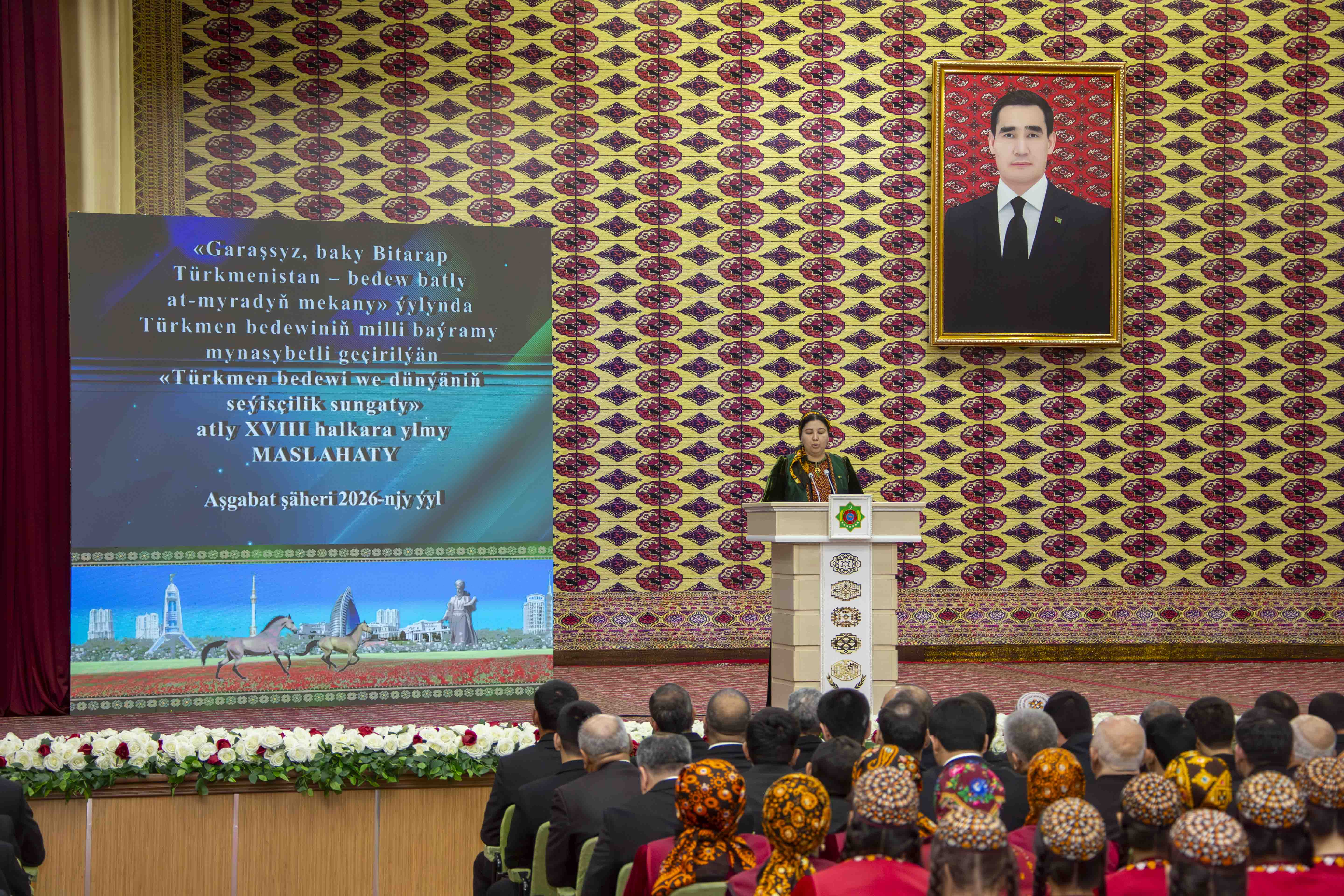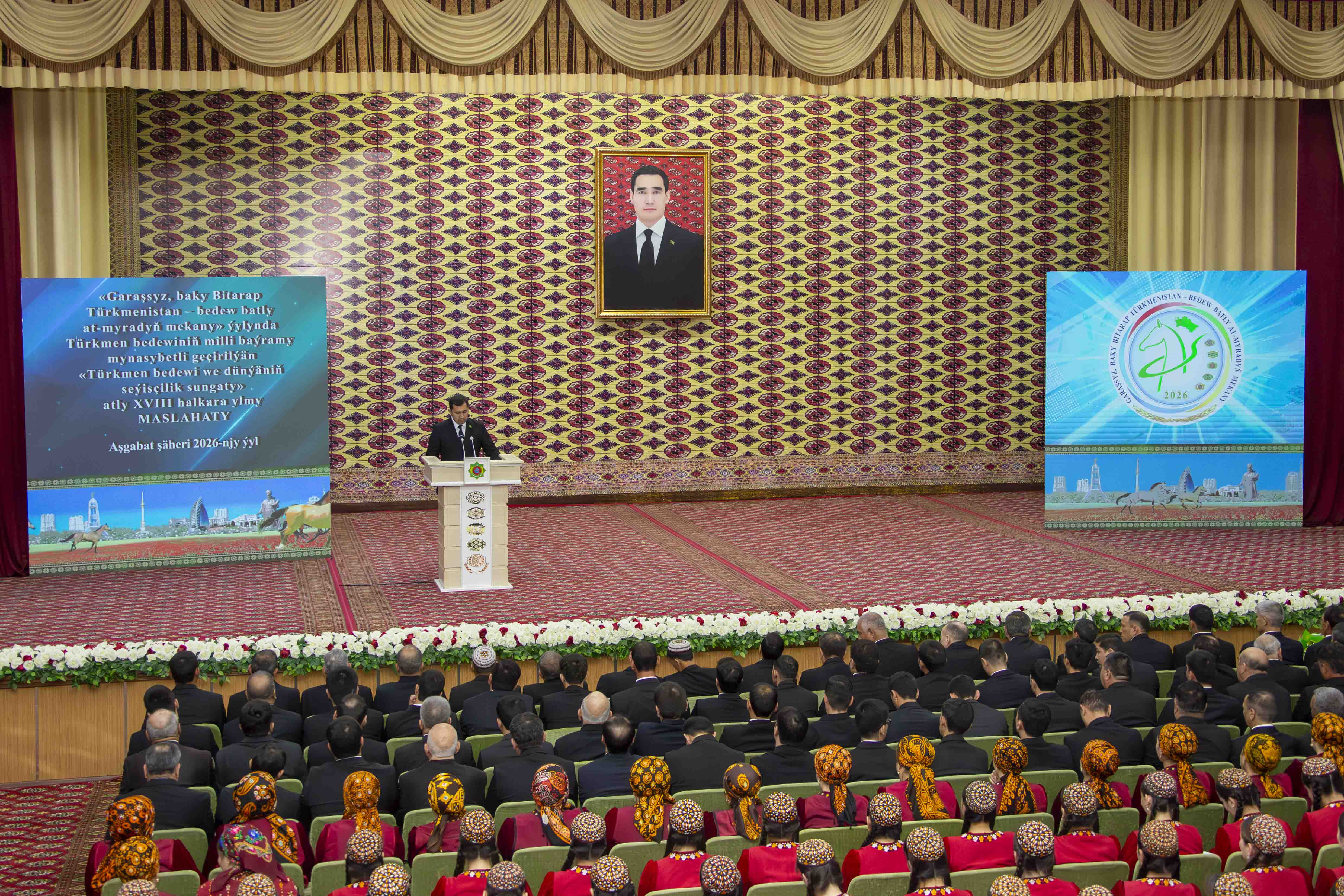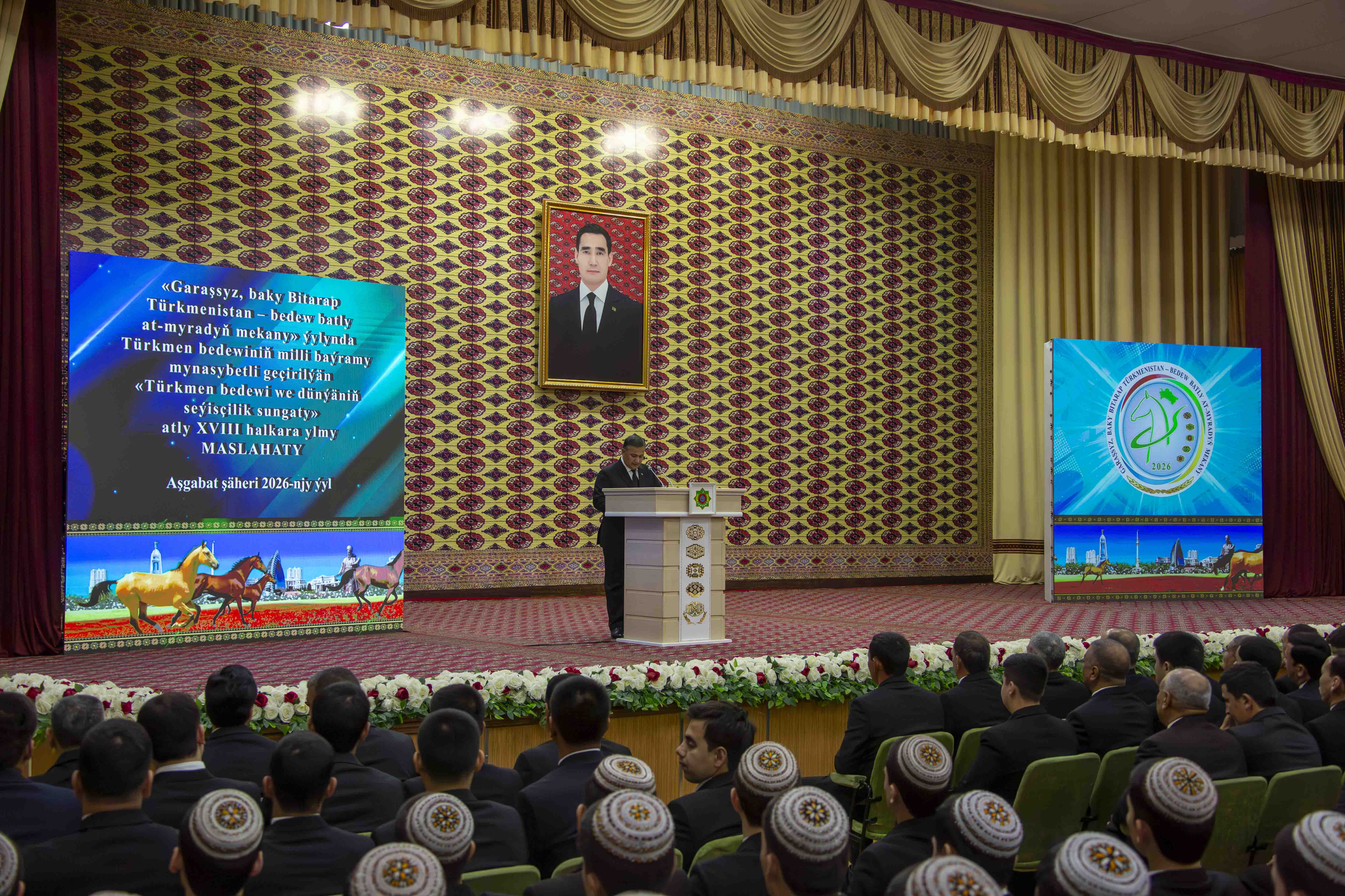 Сегодня в Турк­менском сельскохозяйственном университете имени С.А.Ниязова по случаю Нацио­нального праздника туркменского скакуна, широко отмечаемого в нашей стране в году «Независимый нейтральный Туркменистан – родина целеустремлённых крылатых скакунов», состоялась XVIII международная научная конференция «Туркменский скакун и мировое искусство коневодства».