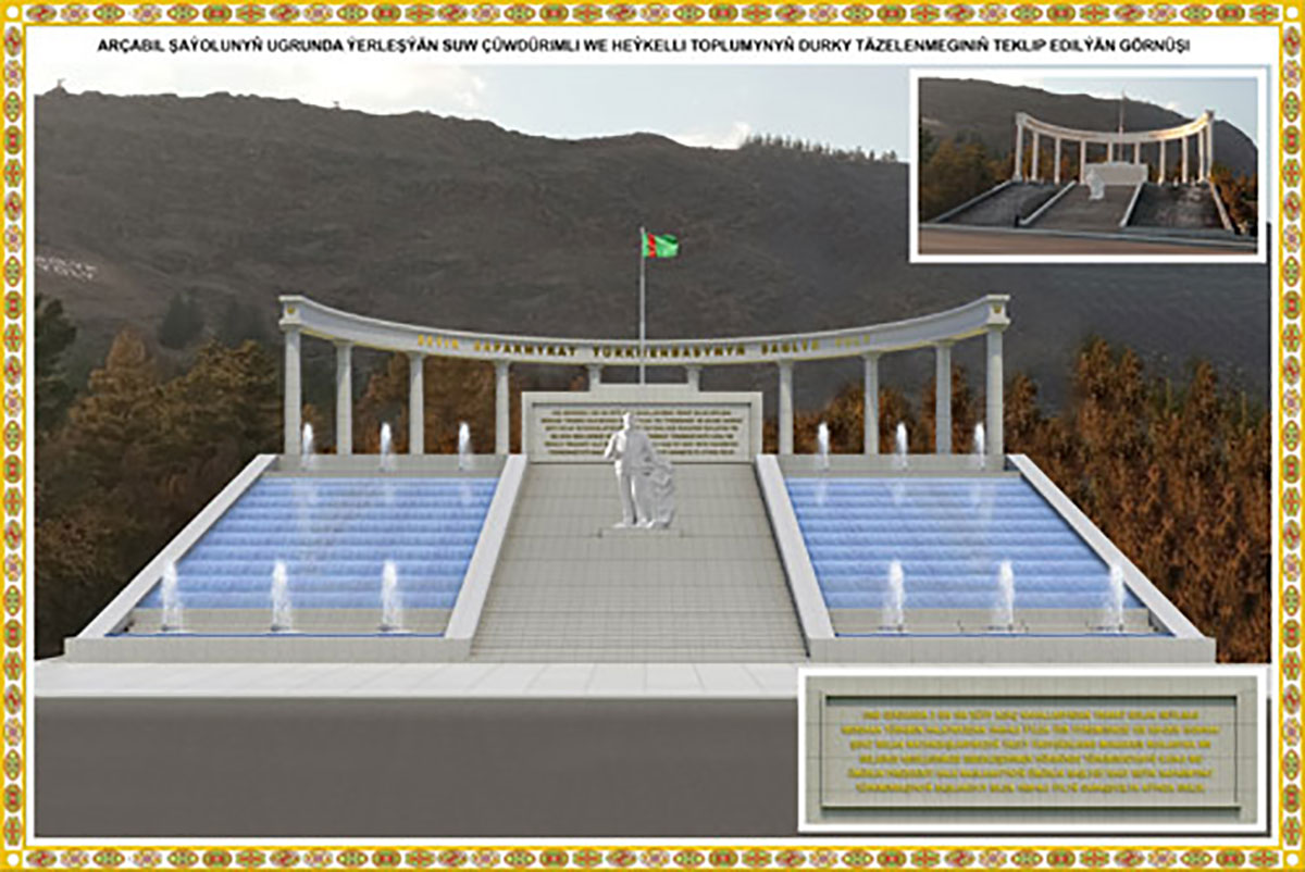 Строители обновят здесь малые архитектурные формы (беседки, скамейки, урны, выполнят мощение пешеходных дорожек гранитом). На территории парковой зоны предстоит установить более 400 мачт освещения. Решено заново облицевать серым гранитом - входную арку, декоративный фонтан, а также каскад с памятником первому Президенту Туркменистана Сапармурату Туркменбаши на противоположной стороне шоссе. Реконструкцию парка предусмотрено завершить в июне нынешнего года.