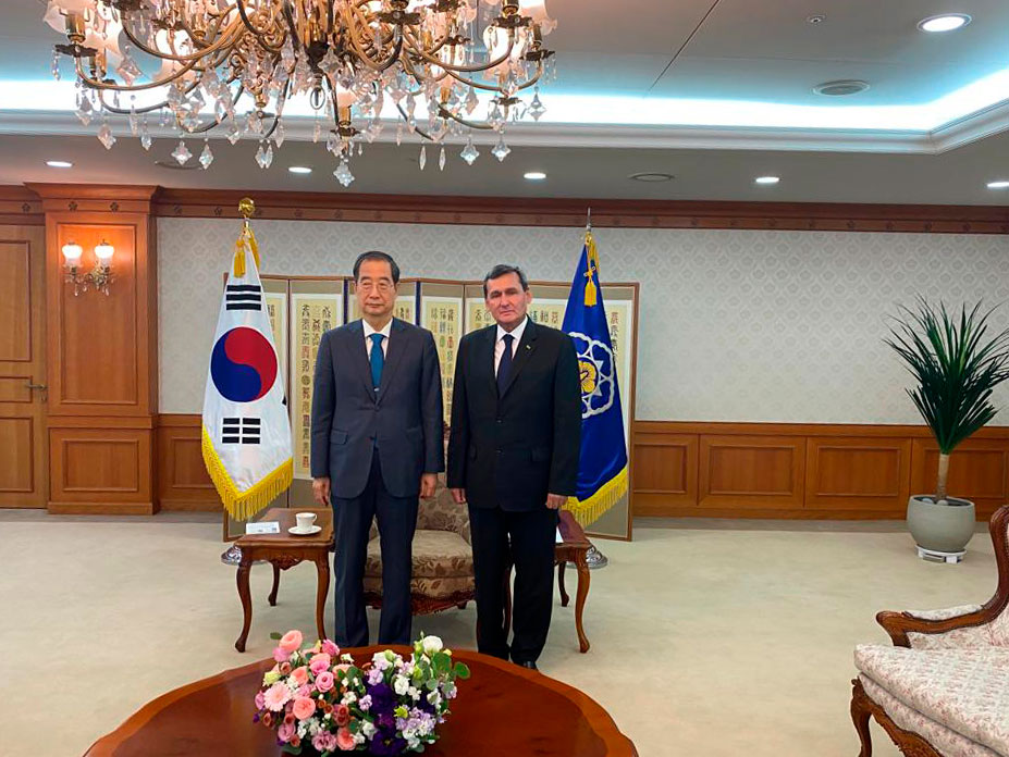 Во время беседы с Премьер-министром Республики Корея был отмечен позитивный опыт сотрудничества двух стран на международных площадках, в первую очередь ООН. Стороны также обсудили возможности открытия в Ашхабаде Образовательного Центра по изучению корейского языка и культуры Фонда Института Короля Седжонга.