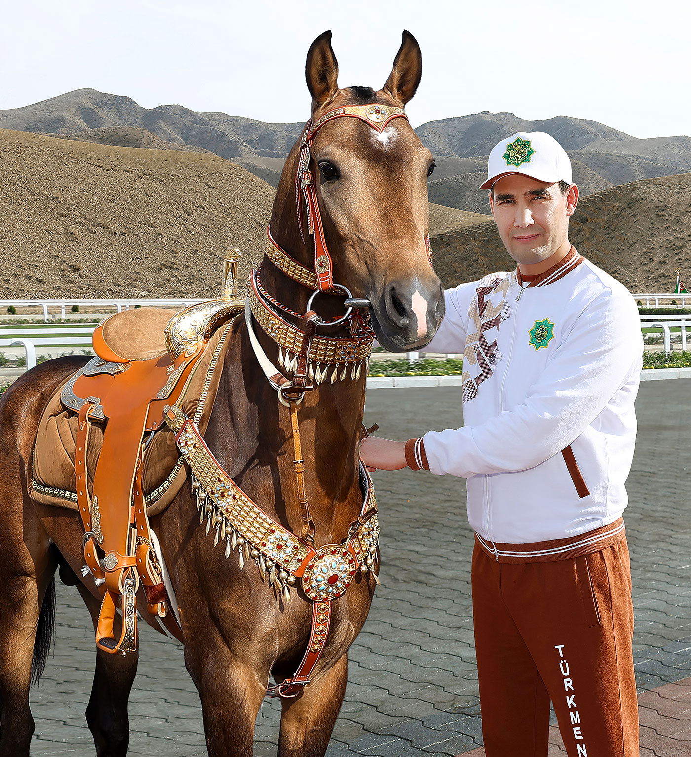 Конь стал олицетворением той энергии, с которой страна достигает колоссальных успехов в своём развитии. Огромная заслуга в деле сохранения и приумножения мировой славы ахалтекинской породы принадлежит Национальному Лидеру туркменского народа, Председателю Халк Маслахаты Гурбангулы Бердымухамедову. Продолжая начинания Героя-Аркадага, всем сердцем впитав народную любовь к скакунам, Аркадаглы Сердар выводит отечественное коневодство на новую высоту, предпринимает беспрецедентные меры по развитию её инфраструктуры, активизации международного сотрудничества в этой области, популяризации конных видов спорта и национальных традиций верховой езды.