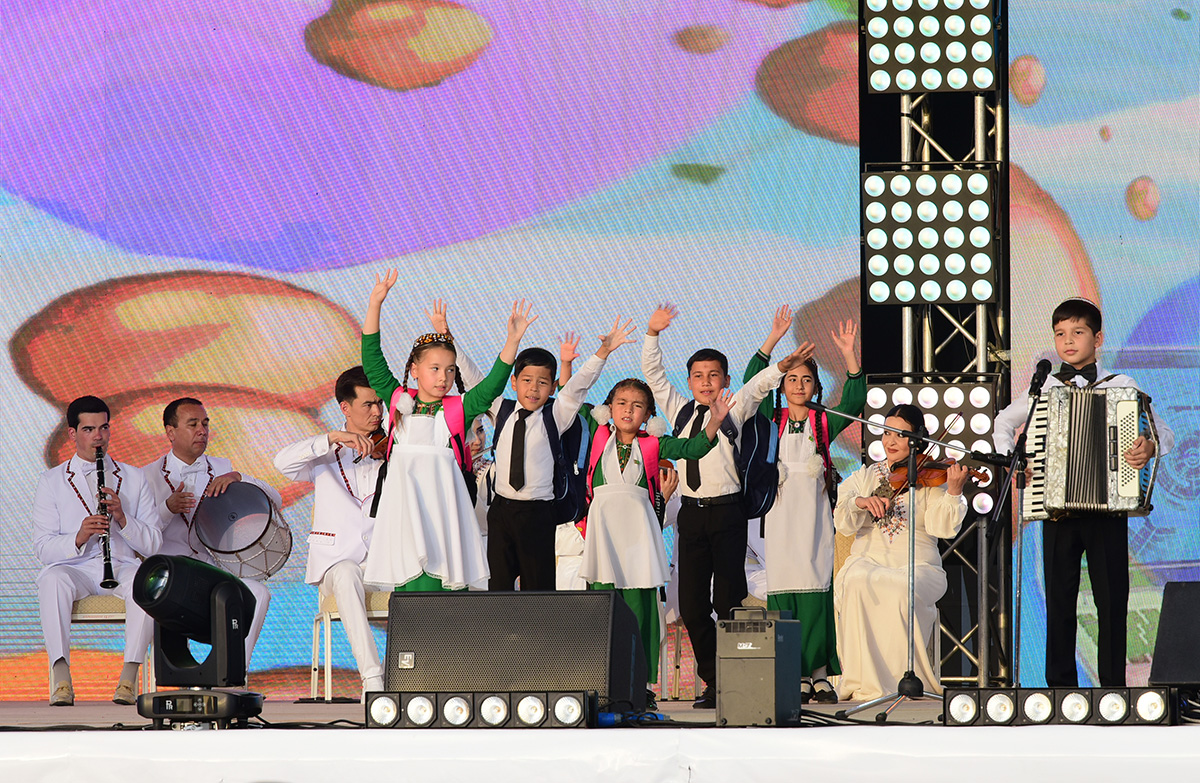 Вечером празднества развернулись на площади перед Государственным цирком, а в песенно-музыкальном центре «Ашхабад» состоялся концерт мастеров искусств. Свои выступления артисты, хореографические ансамбли, фольклорные коллективы посвятили прекрасной столице, Родине и народу, школьным годам.