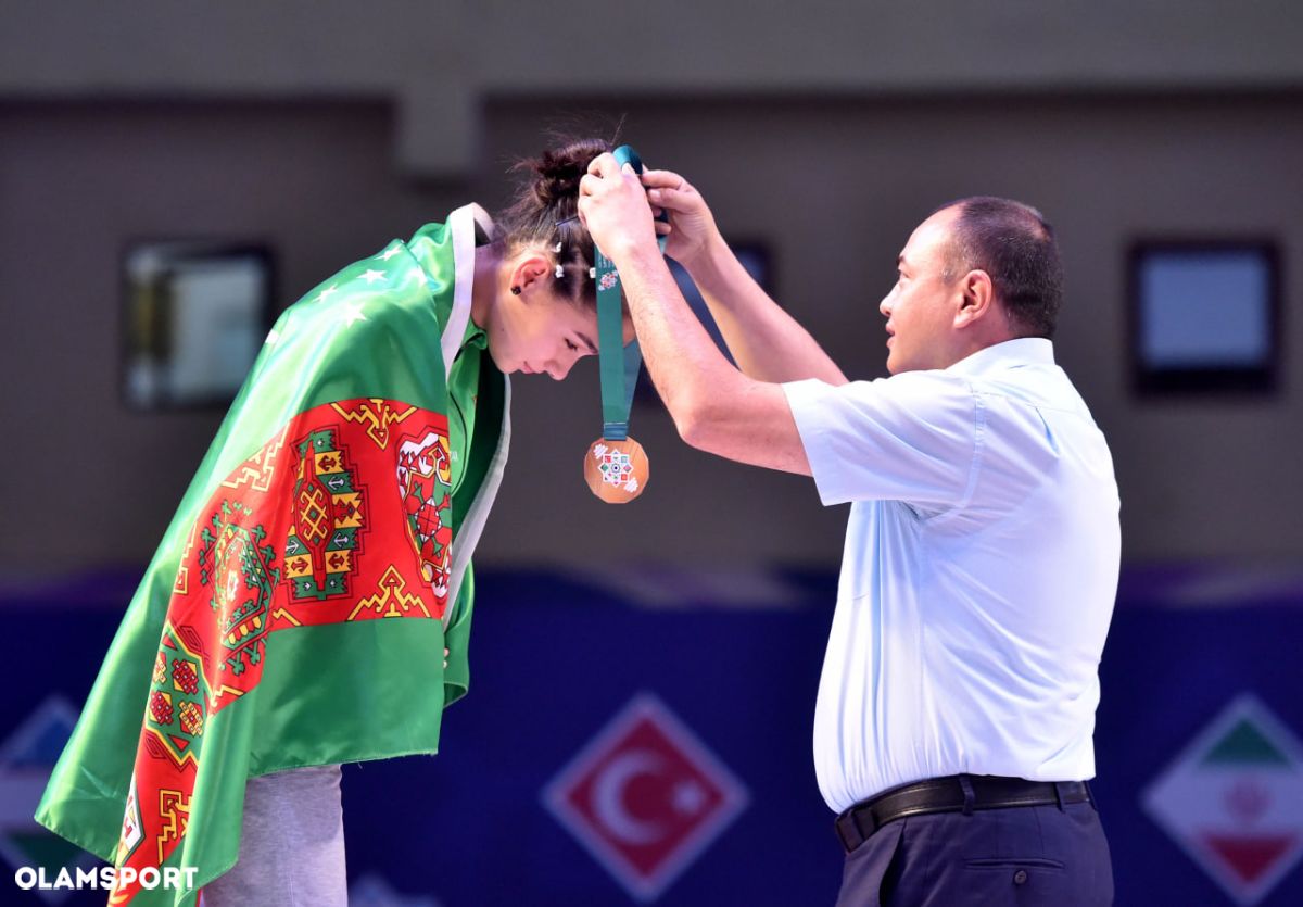 Бронзовой награды в нашей команде удостоилась ученица 9 класса 28-й средней школы Балканабата Балканского велаята Маягозель Хурменова. В весовой категории до 55 кг, в которой медали оспаривали три спортсменки, она показала в двоеборье 120 кг (рывок – 55 кг, толчок – 65 кг).
