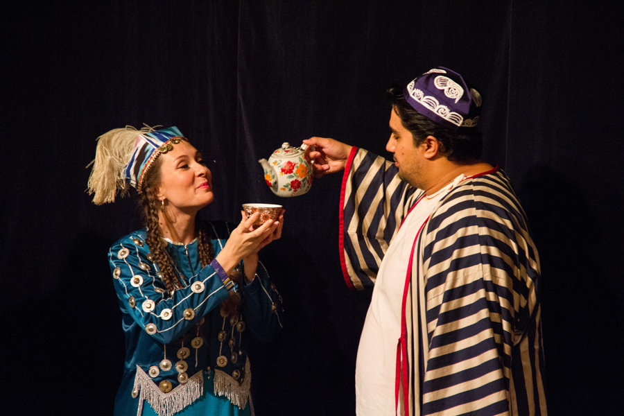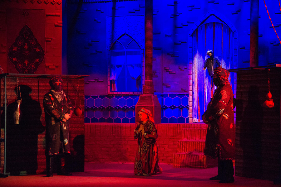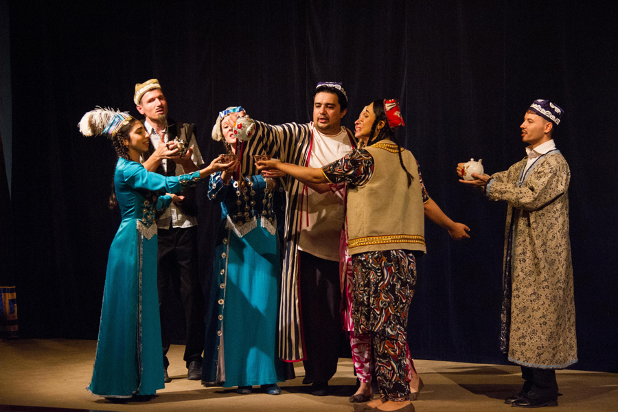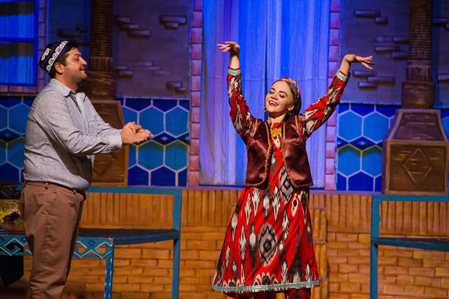 Феерическим шлейфом, привносящим в спектакль восточный колорит, веселье и праздник, явилось выступление массовки. Благодаря хореографии Адели Назаровой и музыкального оформления Бегенча Какаева и Дениса Выборнова, массовые сцены очень украсили спектакль.