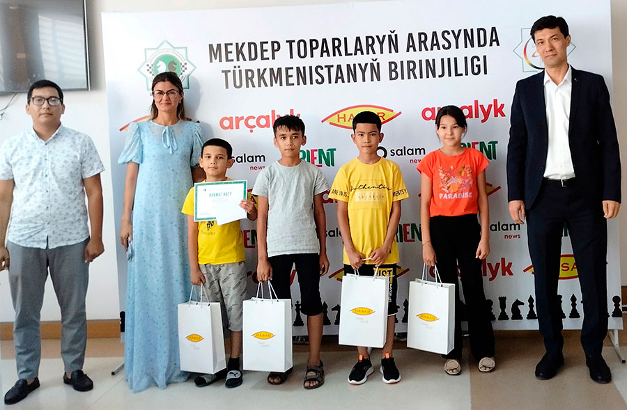 I место: 41-я средняя школа г.Туркменабат Лебапского велаята. 14 командных очков из 14 (очки по доскам: 23,5 из 28 возможных).