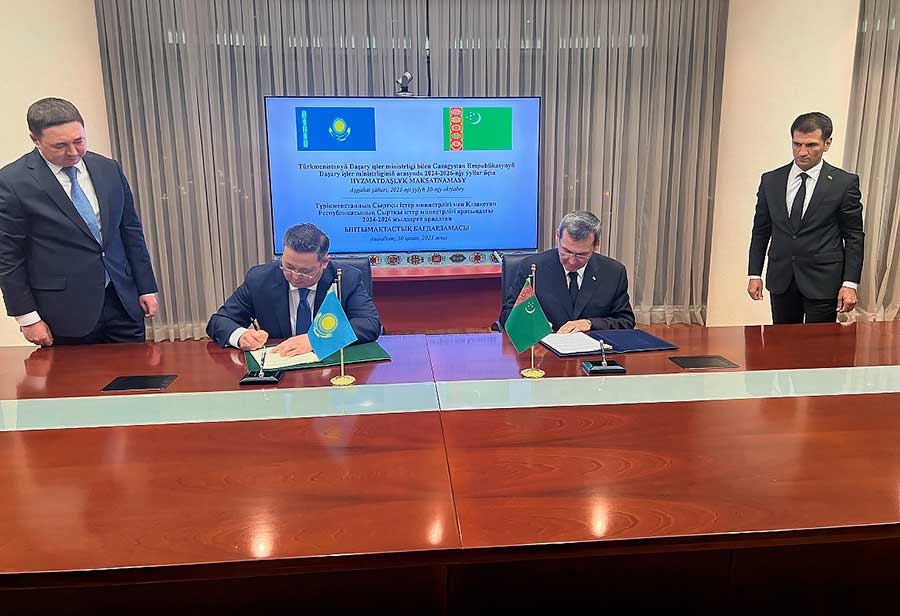 По результатам переговоров, с целью дальнейшей активизации совместной работы в политико-дипломатическом направлении, подписана Программа сотрудничества между министерствами иностранных дел Туркменистана и Республики Казахстан на 2024-2026 годы.