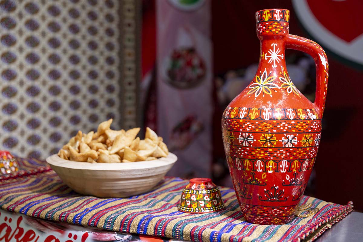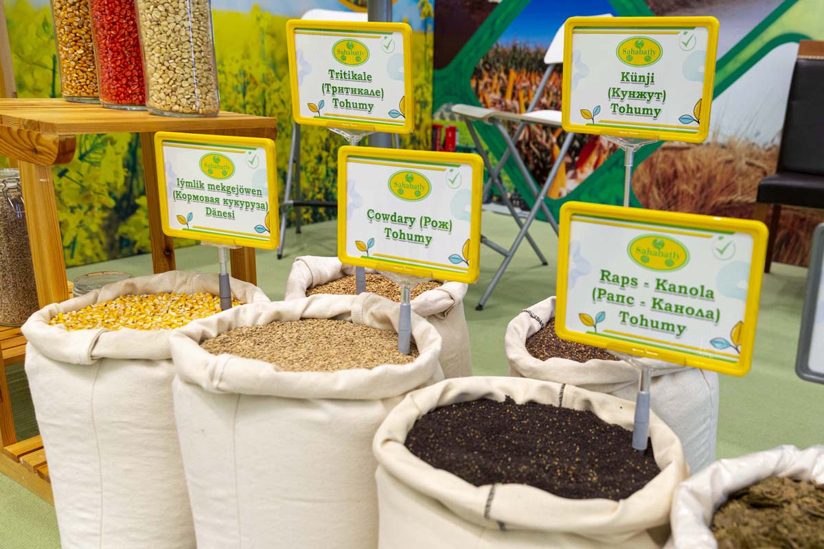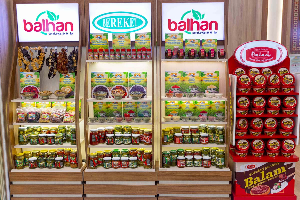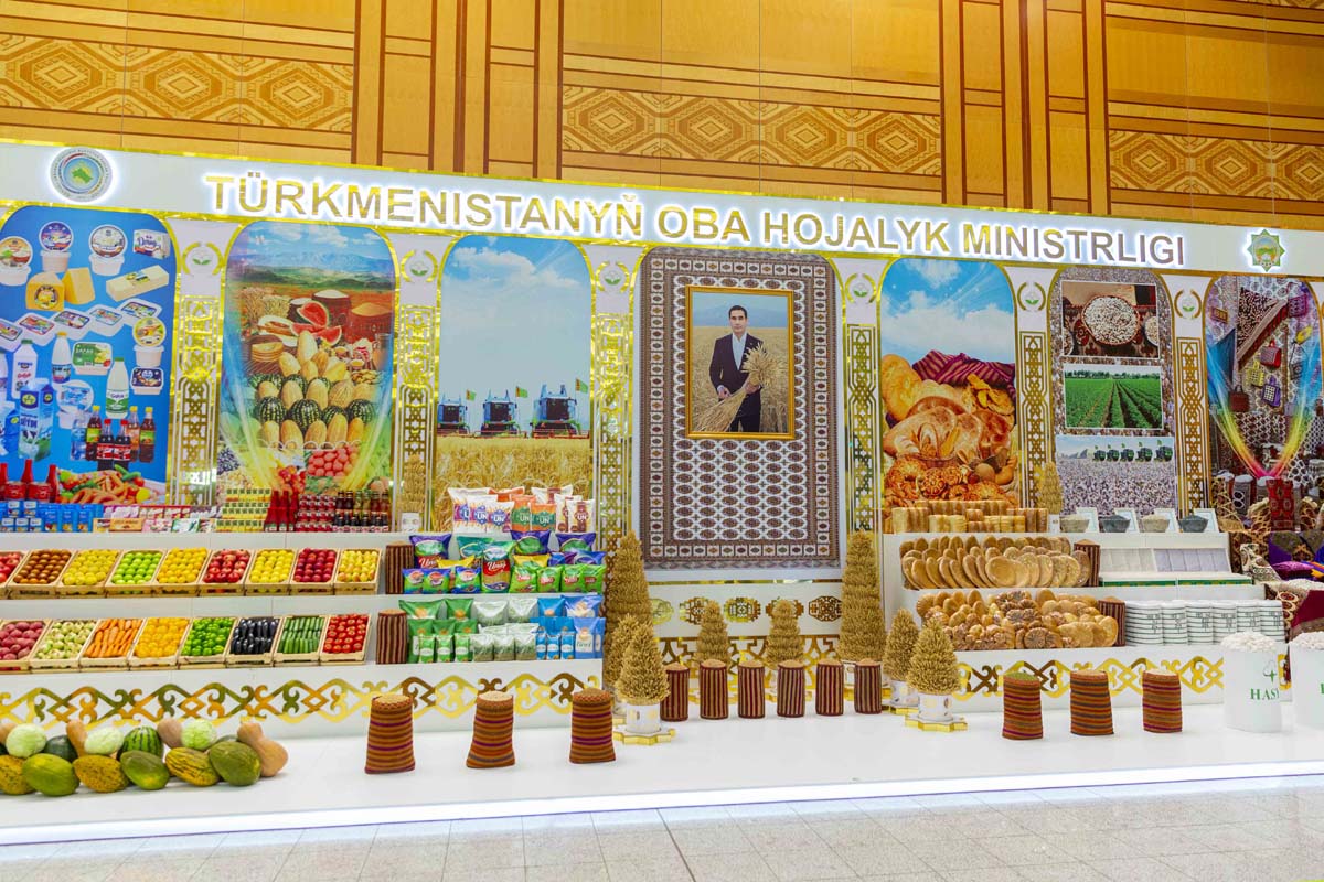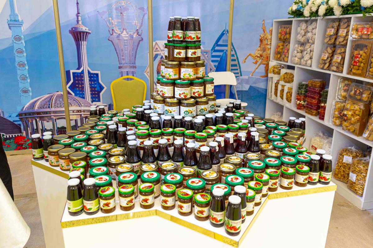 В богатом ассортименте на выставке напитки и чистая питьевая вода предприятий «Arçalyk», «Sada suw», ХО «Ýakymly kümüş suwy», «Mahmal Zip», натуральные овощные и фруктовые соки и нектары. В экспозиции предприятия «Parahat» – популярные соки «Joş», «Eçil», холодный чай, колбасы, детское питание (фруктово-овощные пюре), молочная продукция длительного хранения, несколько сортов кетчупа и томатная паста, изготовленные на основе натурального местного сырья.