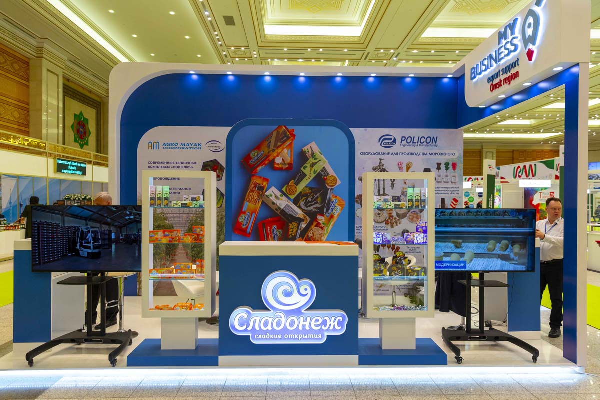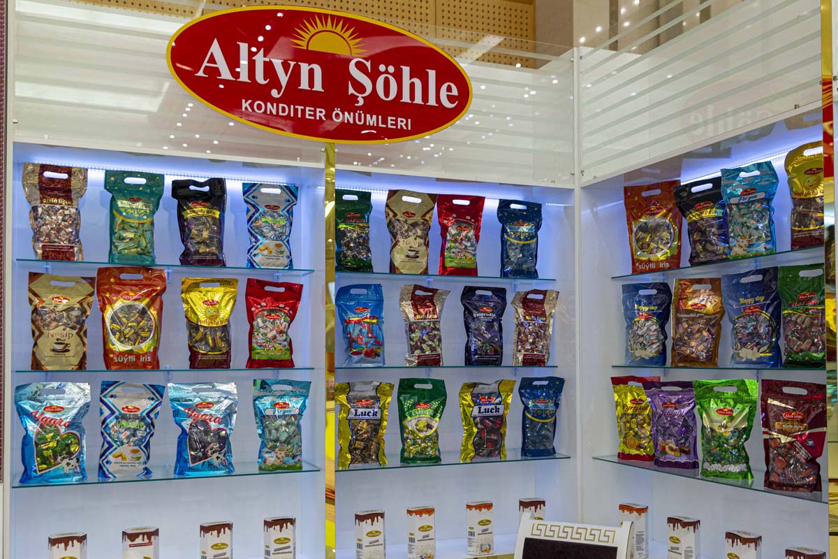 Особенно привлекательны для посетителей павильоны с любимым лакомством детей и взрослых – мороженым торговой марки «Erteki». Россыпи кондитерских изделий на стендах предприятий «Hasar», «Täze aý», «Mekan», «Kilwan», «Bars», «Altyn şöhle». Здесь же демонстрируются популярные сорта хлеба и хлебобулочных изделий в оригинальном праздничном оформлении.
