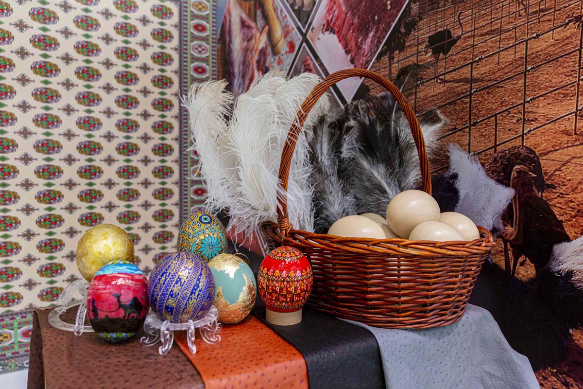 В выставочных павильонах – богатое разнообразие фруктов, овощей, бахчевых, выращенных на сельхозугодиях, предоставляемых государством в аренду членам СППТ, и в тепличных хозяйствах, число которых растёт