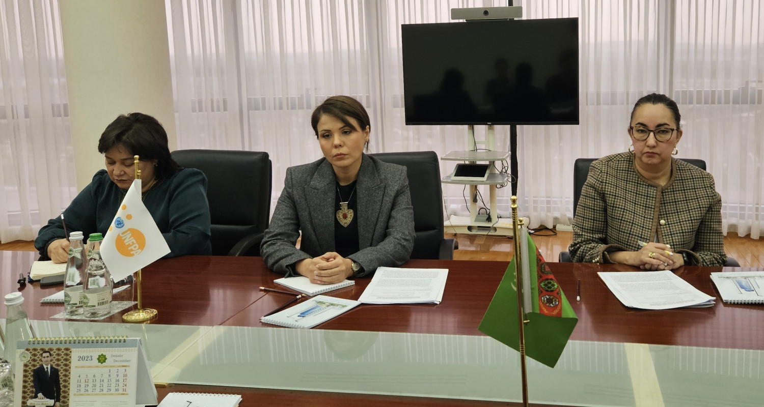 14 декабря 2023 года заместитель министра иностранных дел Туркменистана Мяхри Бяшимова встретилась с Советником Фонда ООН в области народонаселения (ЮНФПА) по гендерным вопросам Лейлой Шарафи, прибывшей в Ашхабад для участия в Международном Форуме «Диалог-гарантия мира». Об этом сообщает МИД Туркменистана.