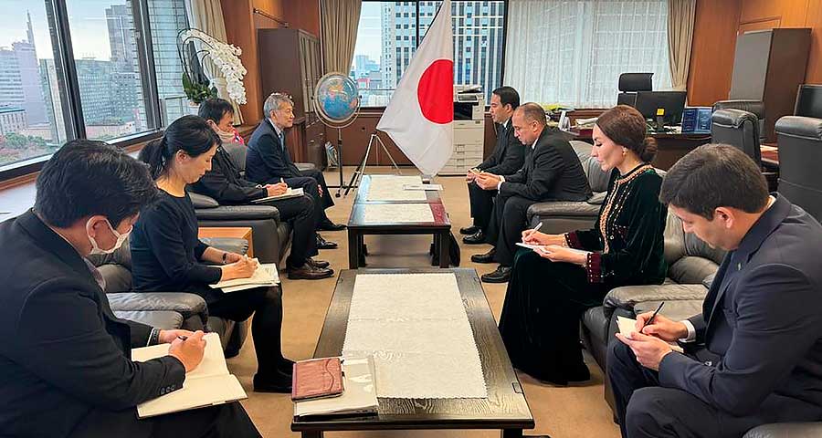 С 13 по 16 декабря 2023 года состоялся визит в Японию делегации Туркменистана под руководством Председателя Государственного банка внешнеэкономической деятельности Туркменистана Р.Джепбарова. Об этом сообщает МИД Тукрменистана.