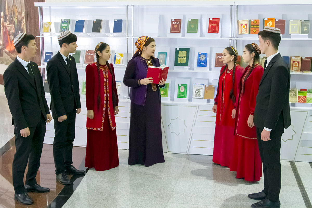 – Подобные тематические выставки наша библиотека организовывает ежемесячно в разных вузах Ашхабада, – говорит библиотекарь Лейла Аннамурадова. – Мы рассказываем студенческой молодёжи о значимости поэзии Махтумкули Фраги в духовно-нравственном аспекте, знакомим с историческими и современными литературными изданиями на разных языках.