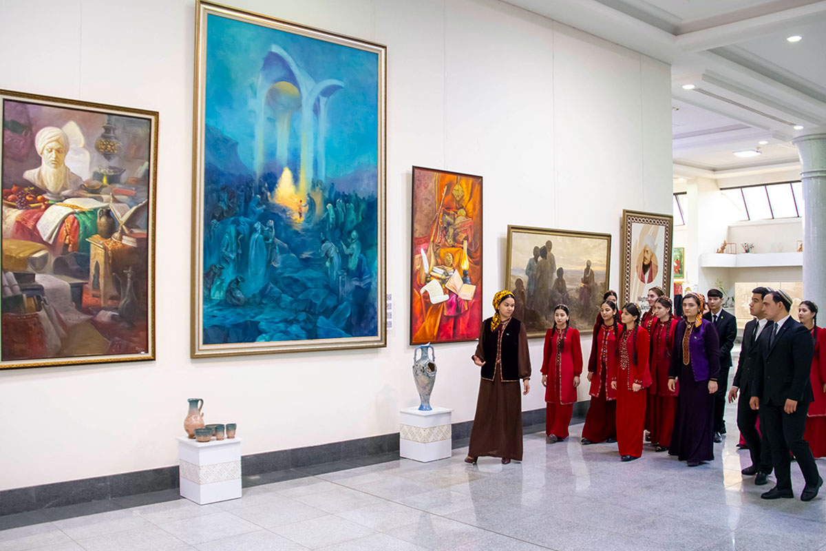 По случаю приближающейся знаменательной даты – 300-летия со дня рождения Махтумкули Фраги – в Государственной академии художеств Туркменистана представители библиотеки организовали книжную выставку «Magtymguly Pyragy – berkararlyk şygary».