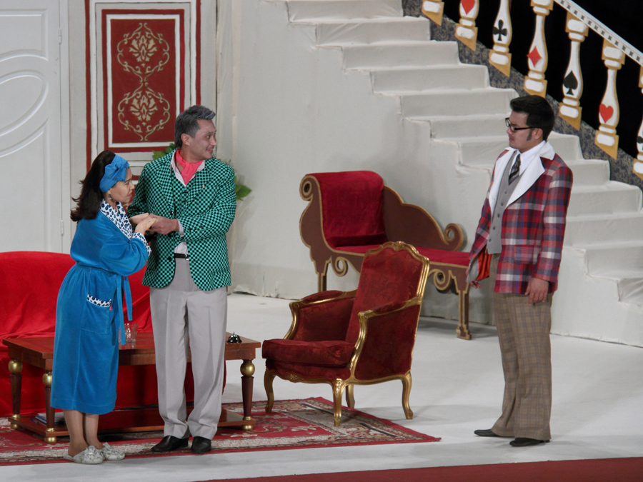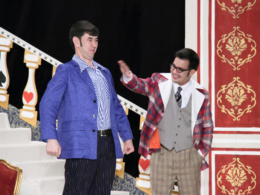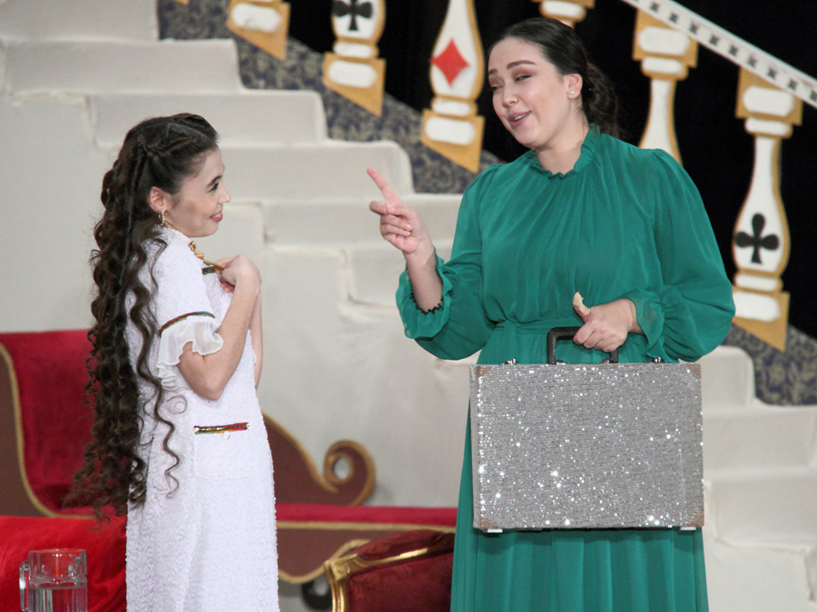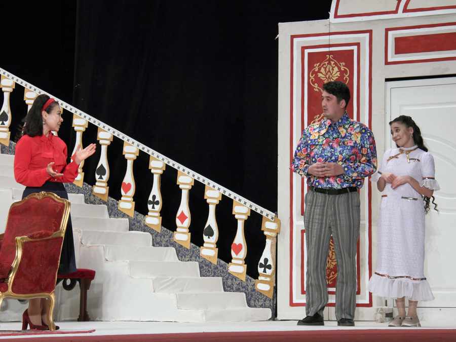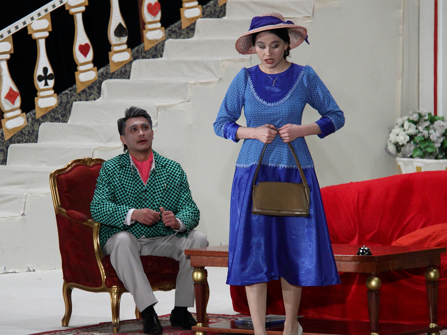 Спектакль хорош тем, что каждый персонаж в нем – это яркий типаж: экзальтированный глава семейства (актер Перхат Бабаев), супруга - дама из высшего общества (заслуженная артистка Туркменистана Гульшат Тахирова), взбалмошная дочка, привыкшая добиваться всего ревом (Лейла Аллаева), внебрачная дочь с хорошими манерами (Огулговхер Мухаммедова), предприимчивая домработница (Шемшат Ходжиева).