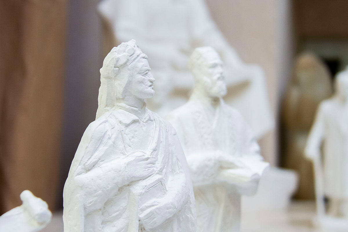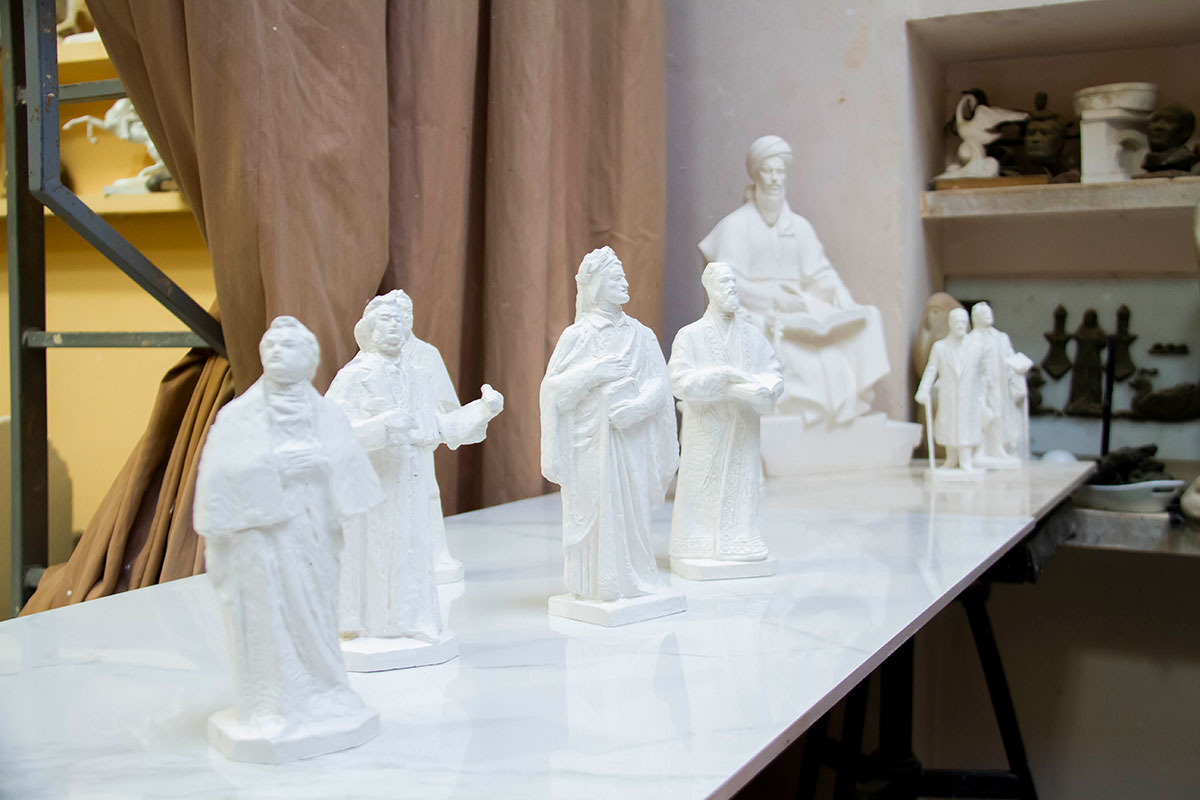 В предгорьях Копетдага на юге Ашхабада в культурно-парковом комплексе Махтумкули Фраги, кроме монументальной скульптуры выдающемуся туркменскому поэту и мыслителю, принято решение установить скульптуры зарубежных поэтов и мыслителей, вошедших в сокровищницу мировой духовности человечества. С этим сообщением мы отправились в мастерскую народного художника Туркменистана Сарагта Бабаева.