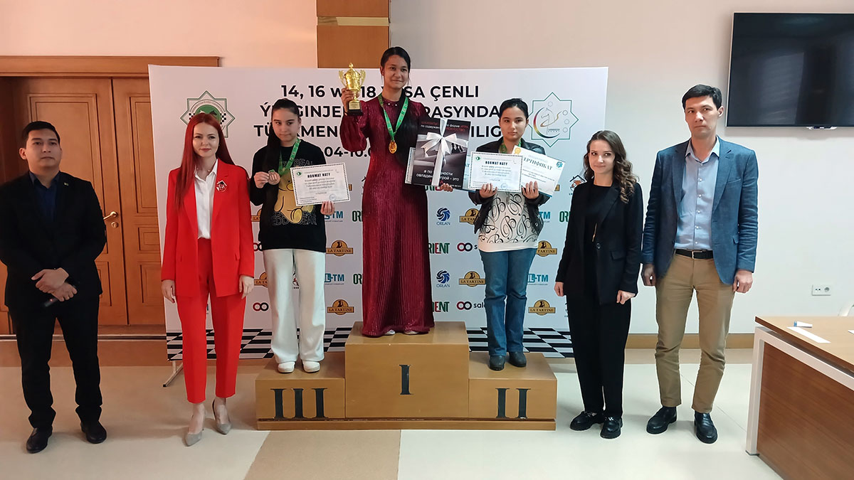 В женском турнире до 16 лет действующая чемпионка страны среди девушек до 17 лет Гульмира Сейильханова выиграла все девять партий (9 очков) и с отрывом в два очка опередила занявшую второе место Мяхри Аймакову, которая также представляла Лебап. На третьей строчке с 6 очками – школьница из Марыйского велаята Дженнет Ялканова.