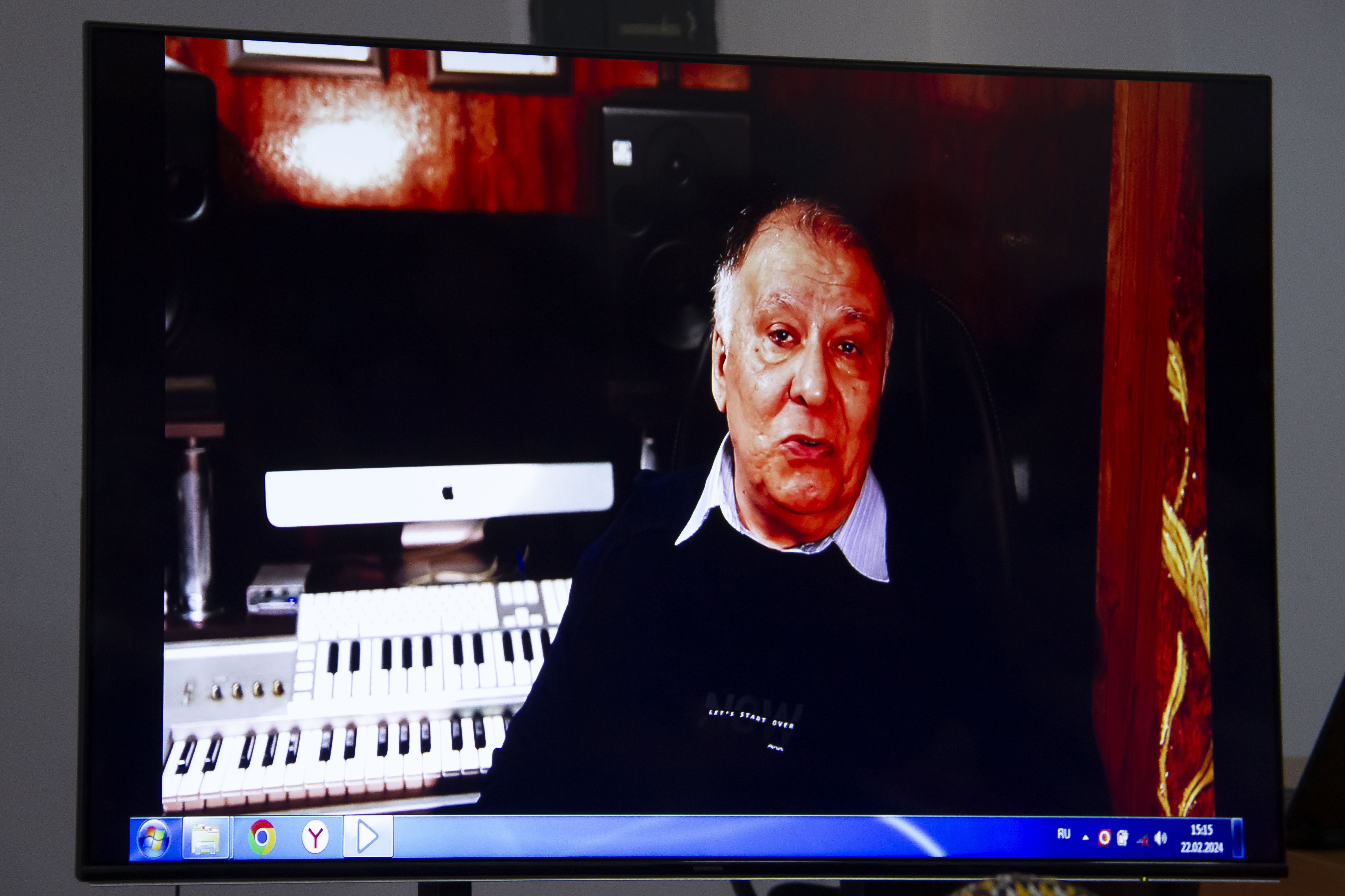 Небольшая справка: Игорь Пинхасов родом из Ашхабада; мало того, в 1988-1996 гг. он преподавал в Туркменской национальной консерватории. Далее на мониторе демонстрировалось видео, в котором Игорь Пинхасов приветствовал слушателей: