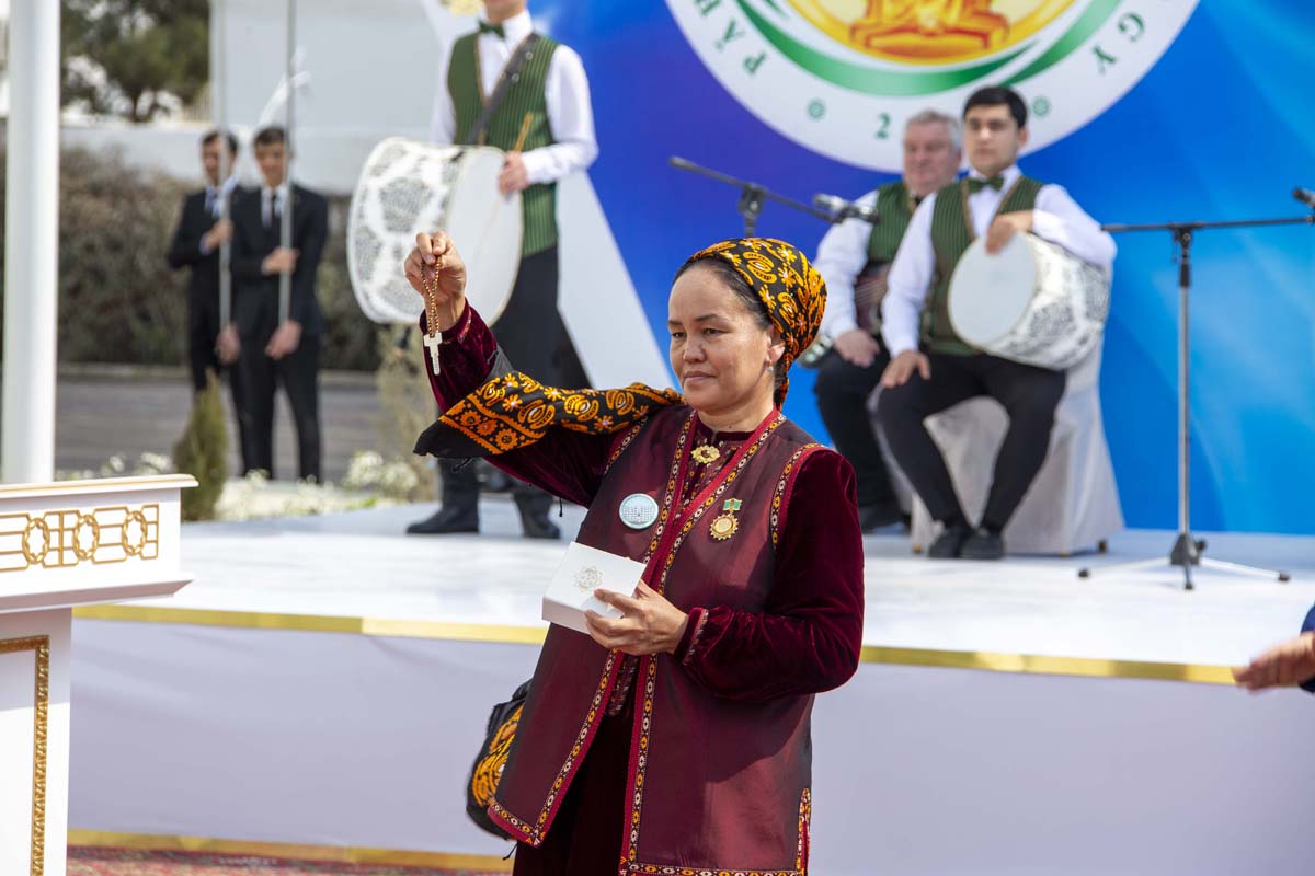 …Нынешние торжества стали незабываемым событием в череде праздничных мероприятий. В году, проходящем под девизом «Кладезь разума Махтумкули Фраги», в соответствии с Указом Президента Туркменистана почётного звания «Ene mähri» удостоены сотни наших соотечественниц. Это звание – высокий знак отличия, большого признания заслуг матери перед обществом и государством, бесценного вклада замечательных женщин в прогресс и процветание Родины.