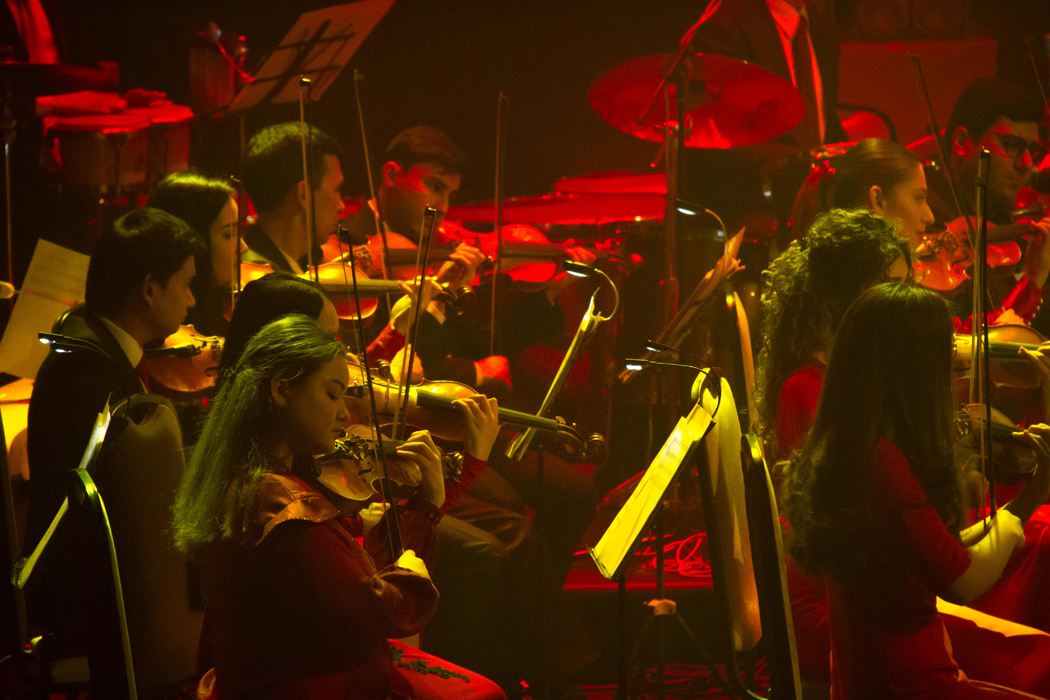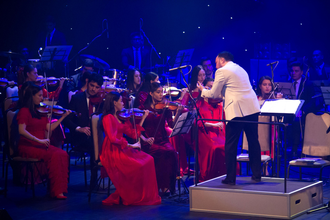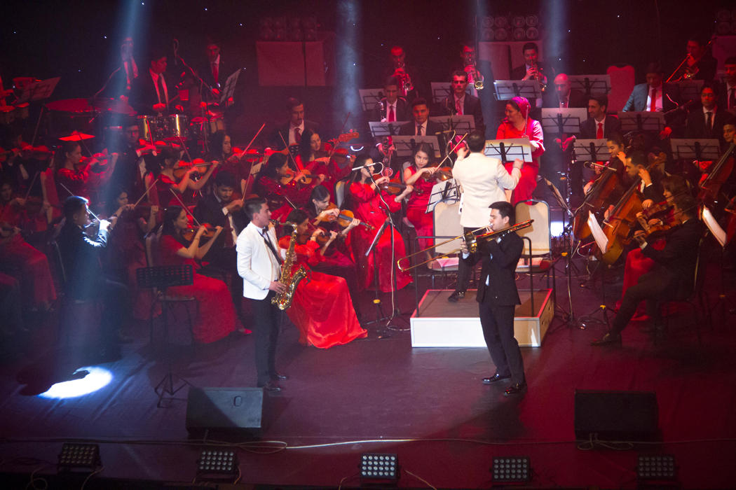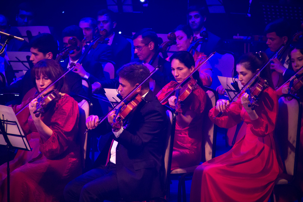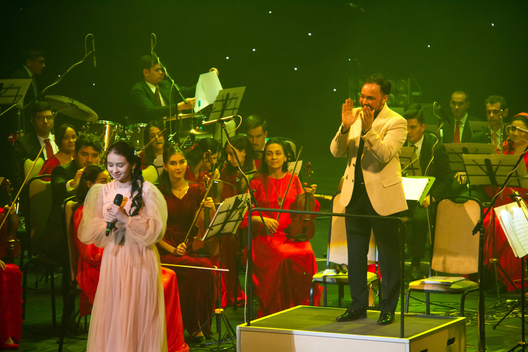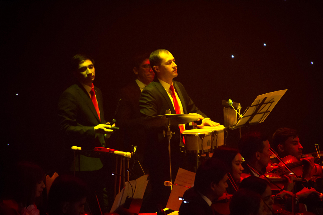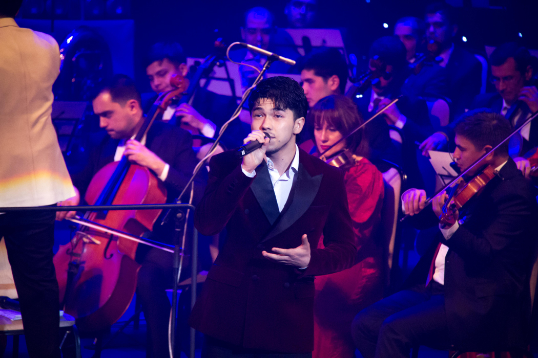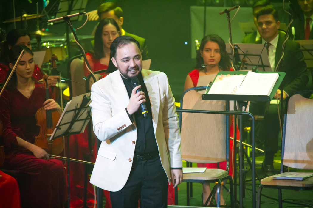 Пленительным волшебством окутал зал вальс из кинофильма «Мой ласковый и нежный зверь» Евгения Доги в исполнении Государственного симфонического оркестра под управлением Расула Клычева.
