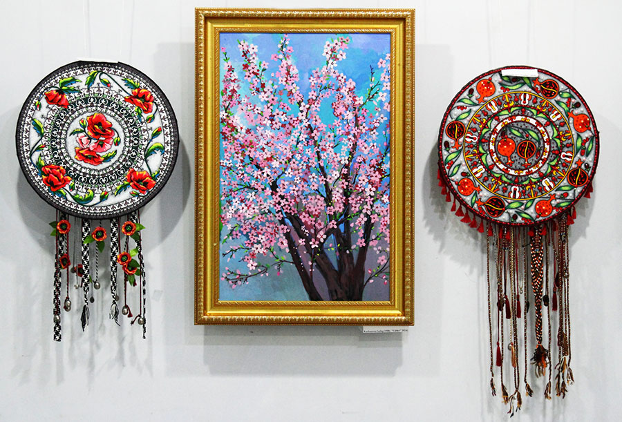 Казалось, что цветы с полотен и гобеленов перешли на керамику. Тончайшую работу «Весенние цветы» в двух ажурных сосудах представила Айтач Дашаева.