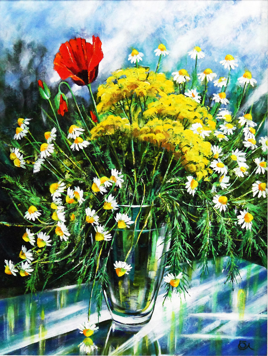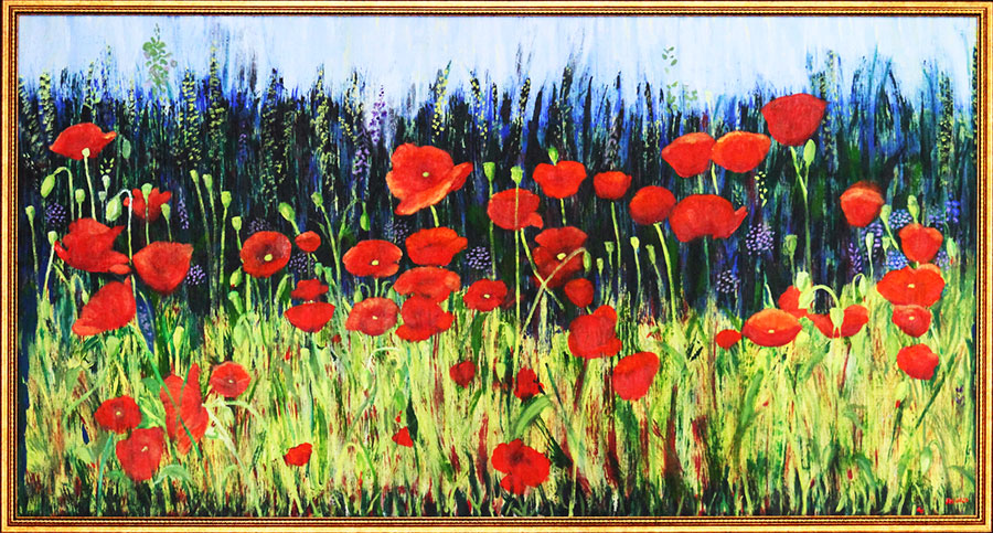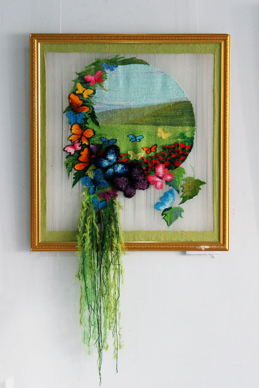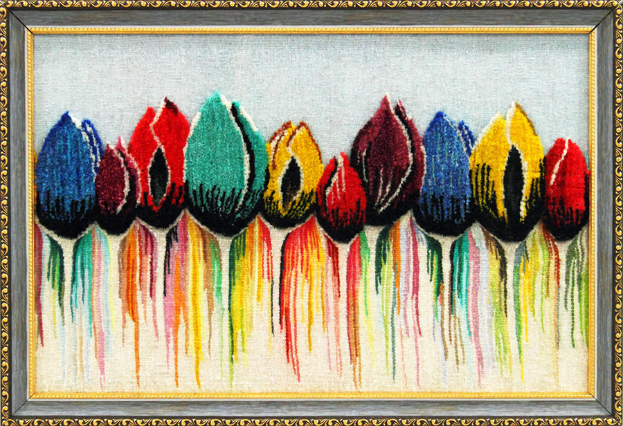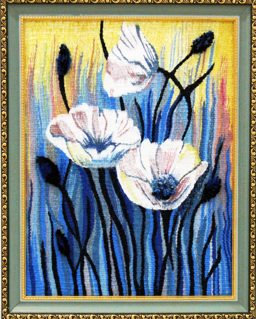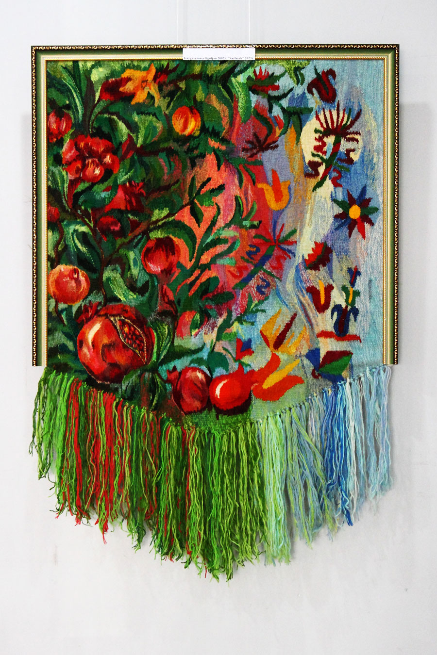 Работа Натальи Калугиной, изображающая безбрежное поле алых маков, так и называется «Да здравствует жизнь!». Художница Ольга Барышева представила две свои работы – «Белая сирень» и «Полевые цветы». Целую экспозицию гобеленов представили Тылла Полтаева, Шекер Джораева, Дилбер Пирмухаммедова с изображением розы. Художницам удалось в нитях выразить тончайшие оттенки лепестков королевы цветов.