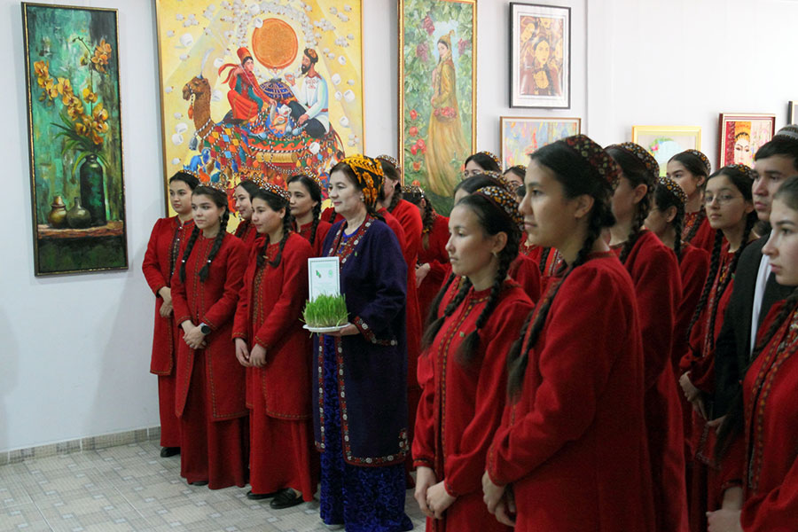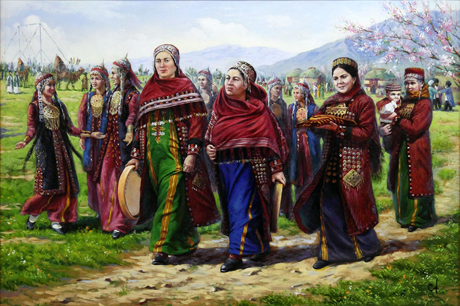 Весенний праздник Новруз с широким размахом отмечается туркменским народом. Говхер Бабаева подчеркнула это в своей работе «Весенний праздник», изобразив на полотне празднично одетых женщин, спешащих на той.