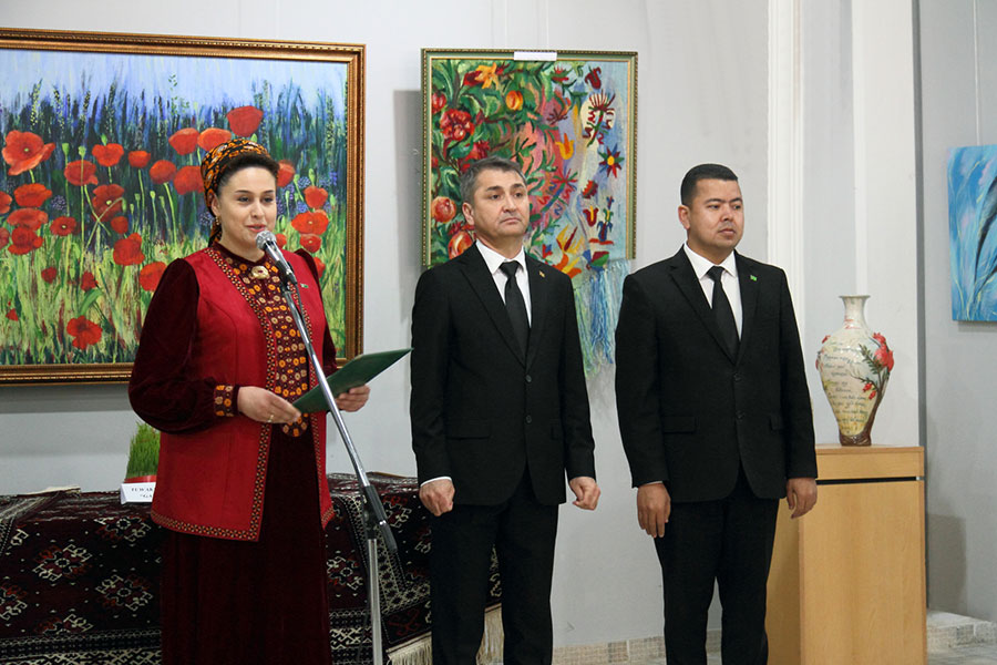 В Выставочном центре изобразительного искусства Министерства культуры Туркменистана развернута выставка работ туркменских художников, запечатлевших приход весны в красках, гобеленах и керамике.